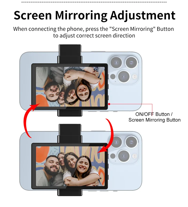 Say goodbye to upside-down screens by effortlessly reversing the image with the Screen Mirror Image Button. With just a click of a button, you can effortlessly optimize your productivity by instantly flipping your screen, eliminating the annoyance of inverted images. Our selfie screen uses a type-C charging port, allowing it to be charged using various power sources such as a 5V/0.5A charger, power bank, laptop, or car charger. (Type-C cable is included)