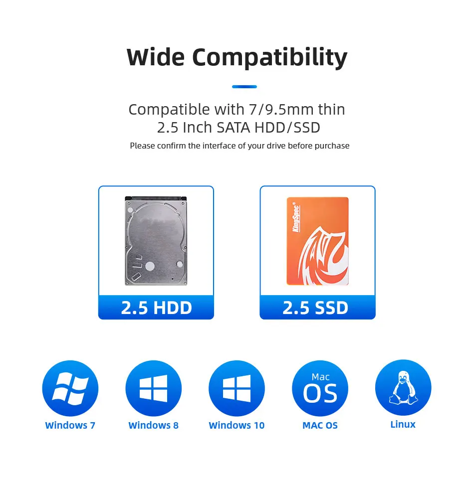Comprar KingSpec-carcasa de disco duro HD, caja de SSD portátil, adaptador de disco duro HDD SSD de 2,5 pulgadas, color negro externo, USB3.0, para enrutador y TV