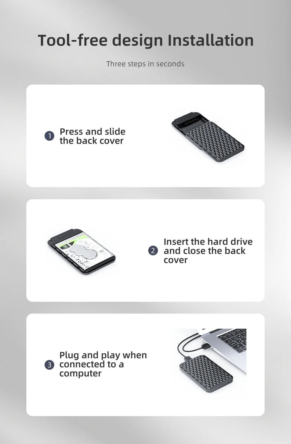 Kingspec SSD Case 2,5 SATA a USB 3,0 Adaptador Caja de disco duro para SSD Disk Box Tipo C 3,1 Case HD External HDD Enclosure