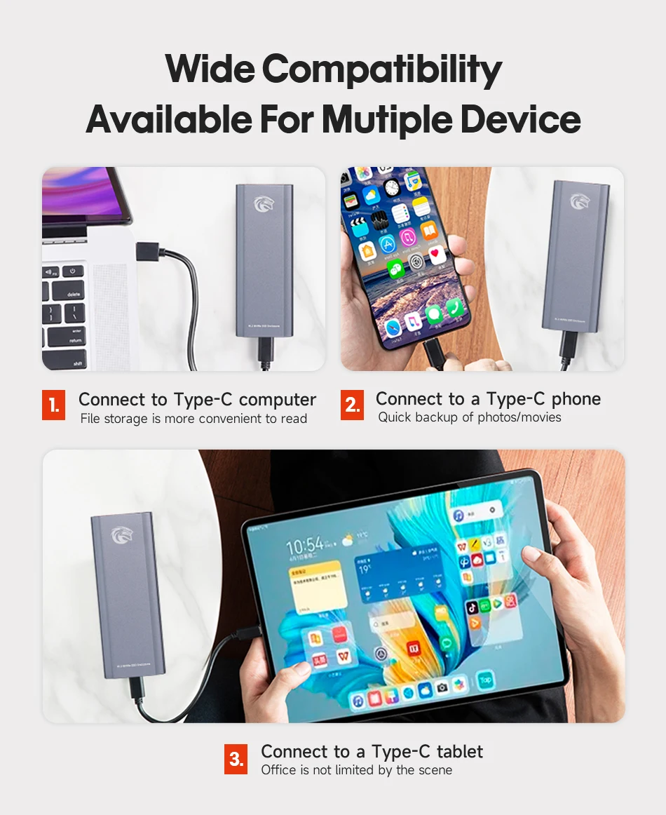 Comprar KingSpec-carcasa M2 NVMe SSD, caja de 10Gbps, M.2 NVME SSD A USB 3,1, carcasa tipo A tipo C, Cable para M.2 SSD con OTG