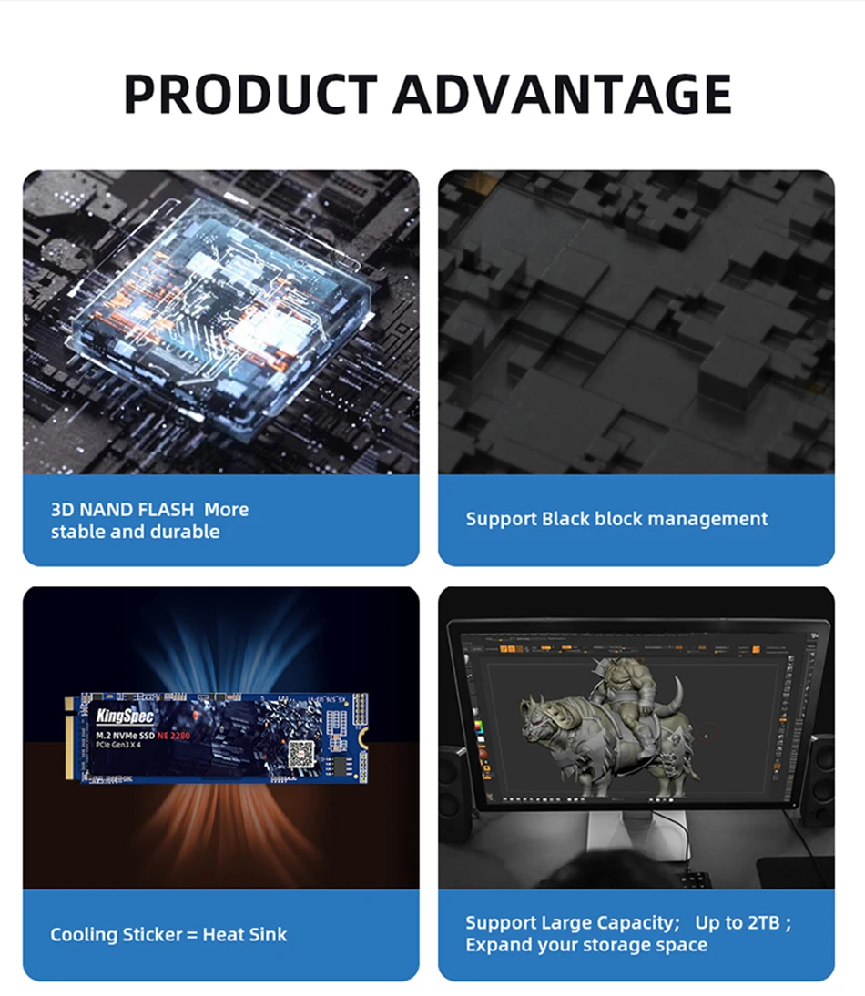 2.M.2 NVMe PCIe 4.0 SSD 2280 ofrece una variedad de capacidades para que usted elija (128 GB, 256 GB, 512 GB, 1 TB), que satisfacen sus necesidades en diferentes escenarios.