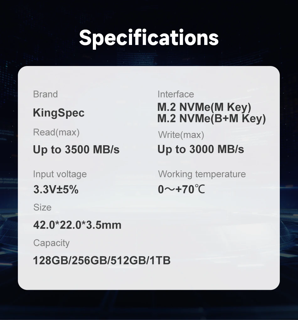 Comprar KingSpec-disco duro M.2 SSD M2 NVME, 128GB, 256GB, 512GB, 1TB, M.2, PCIe 3,0, para Notebook y Escritorio