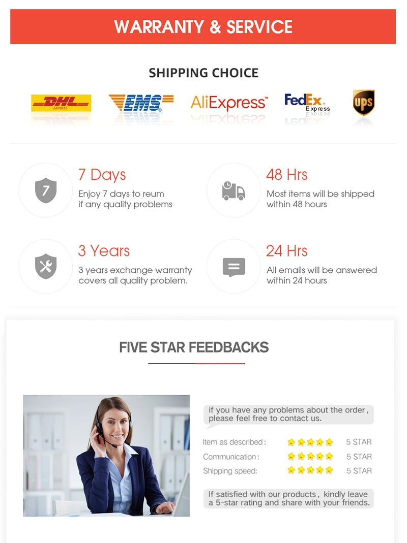 2.Prometimos un reembolso del 100% si no recibe los productos.