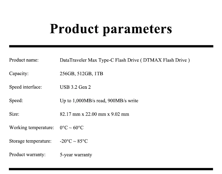 Tanto las variedades de conectores tipo C como tipo A de la serie DT Max están respaldadas por una garantía limitada de cinco años, soporte técnico gratuito y confiabilidad legendaria de Kingston.