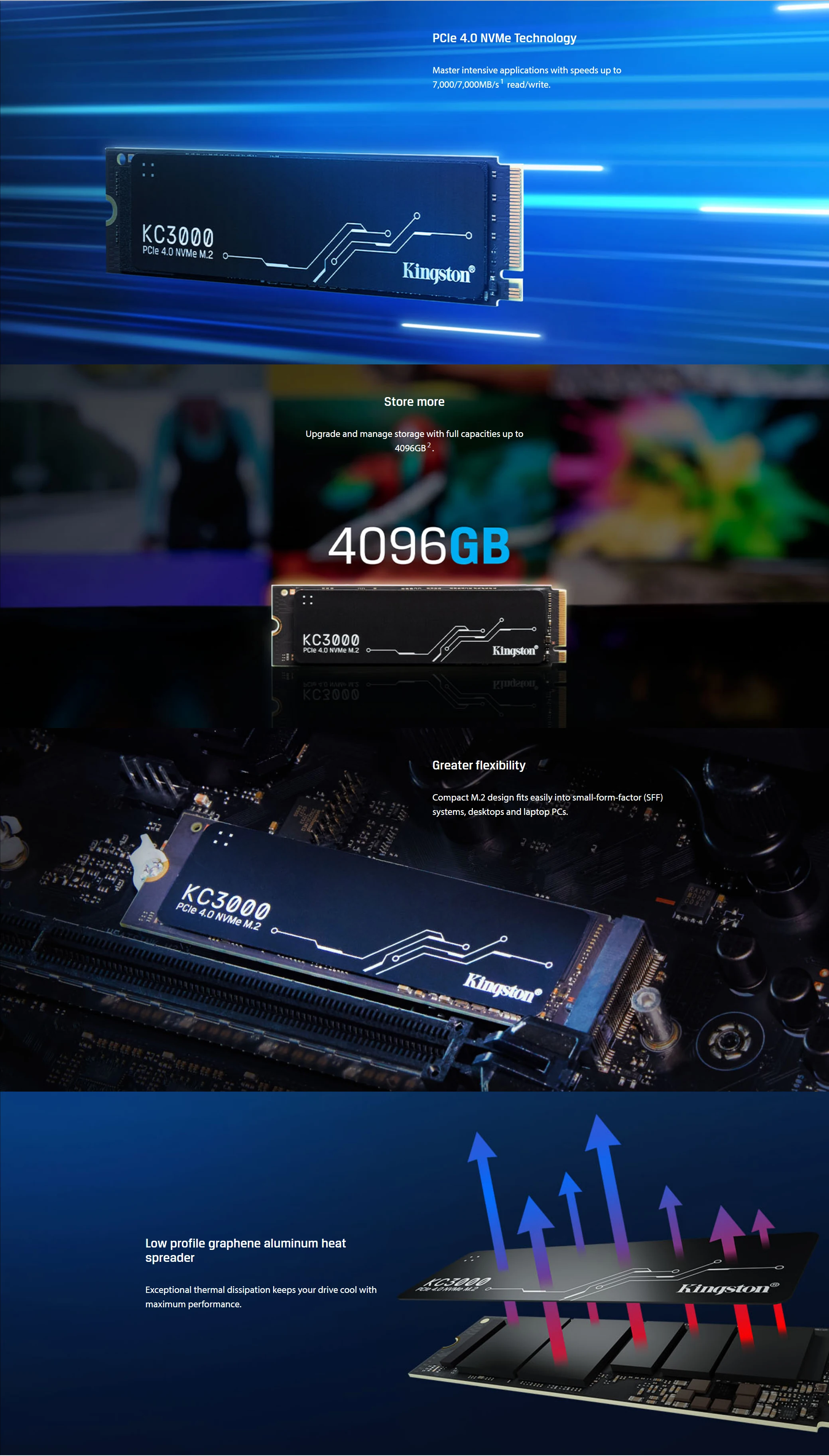 KC3000 PCIe 4,0 NVMe M.2 SSD Almacenamiento de alto rendimiento para ordenadores de sobremesa y portátiles, para un ordenador de sobremesa y un portátil
