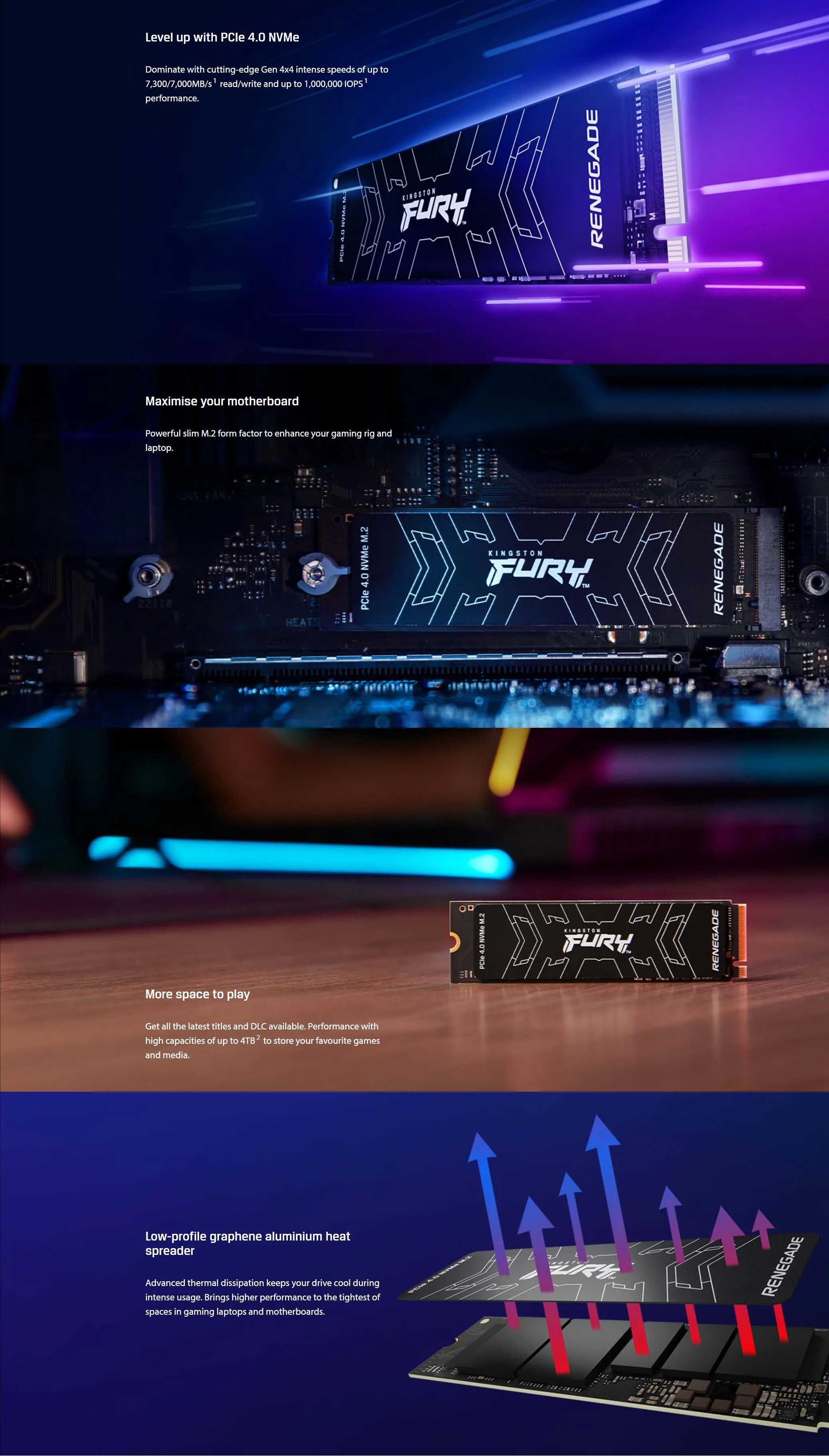 Kingston FURY Renegade PCIe 4,0 NVMe M.2 SSD Para jugadores, entusiastas y usuarios potentes