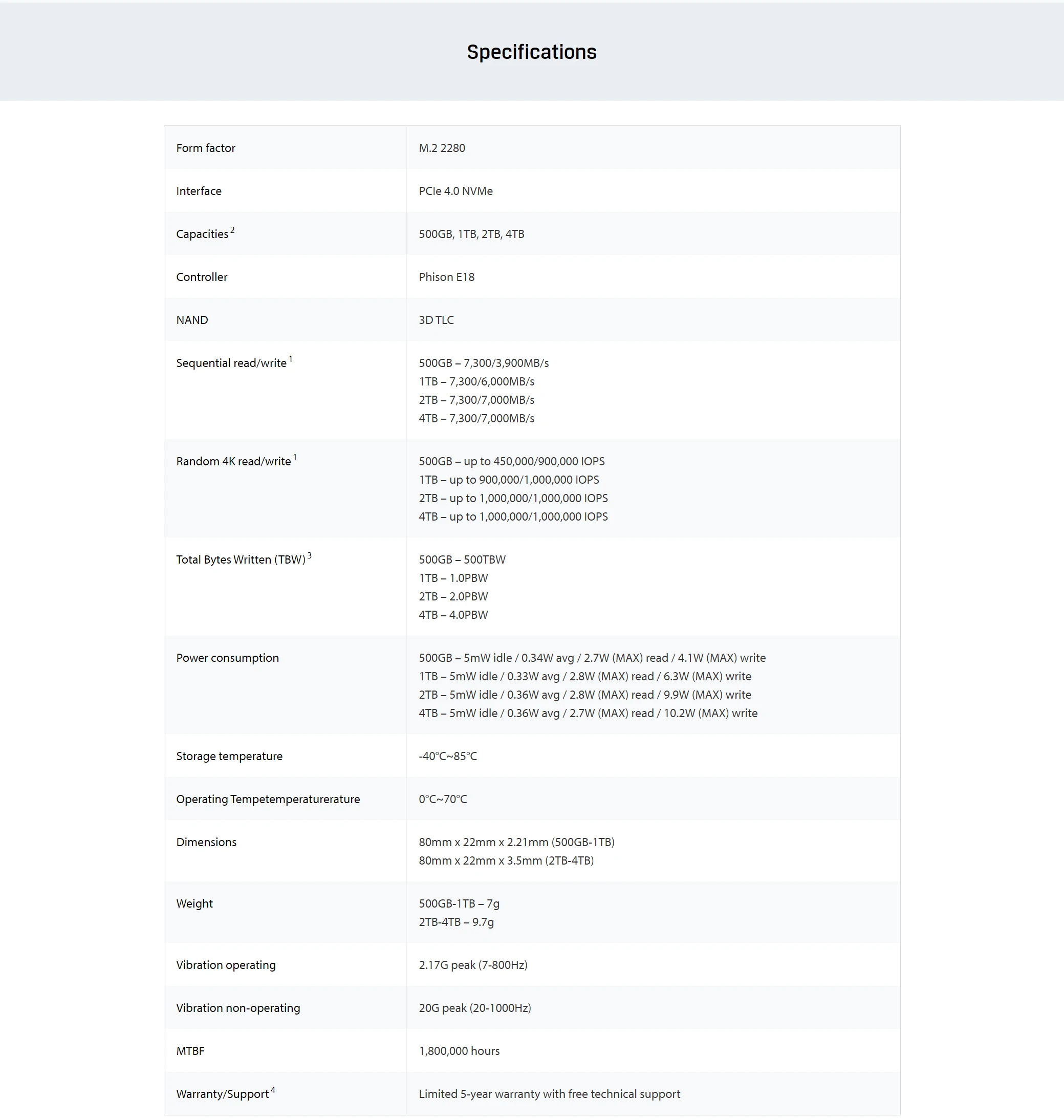 Kingston KC3000 PCIe 4,0 NVMe M.2 SSD ofrece un rendimiento de siguiente nivel utilizando el último controlador Gen 4x4 NVMe y 3D TLC NAND. Mejore el almacenamiento y la confiabilidad de su sistema para mantenerse al día con las cargas de trabajo exigentes y experimente un mejor rendimiento con aplicaciones de software como el renderizado 3D y la creación de contenido 4K +. Con formidables velocidades de hasta 7.000 MB/s 1De lectura/escritura, garantiza un flujo de trabajo mejorado en equipos de escritorio y portátiles de alto rendimiento, lo que lo hace ideal para usuarios avanzados que requieren las velocidades más rápidas del mercado.