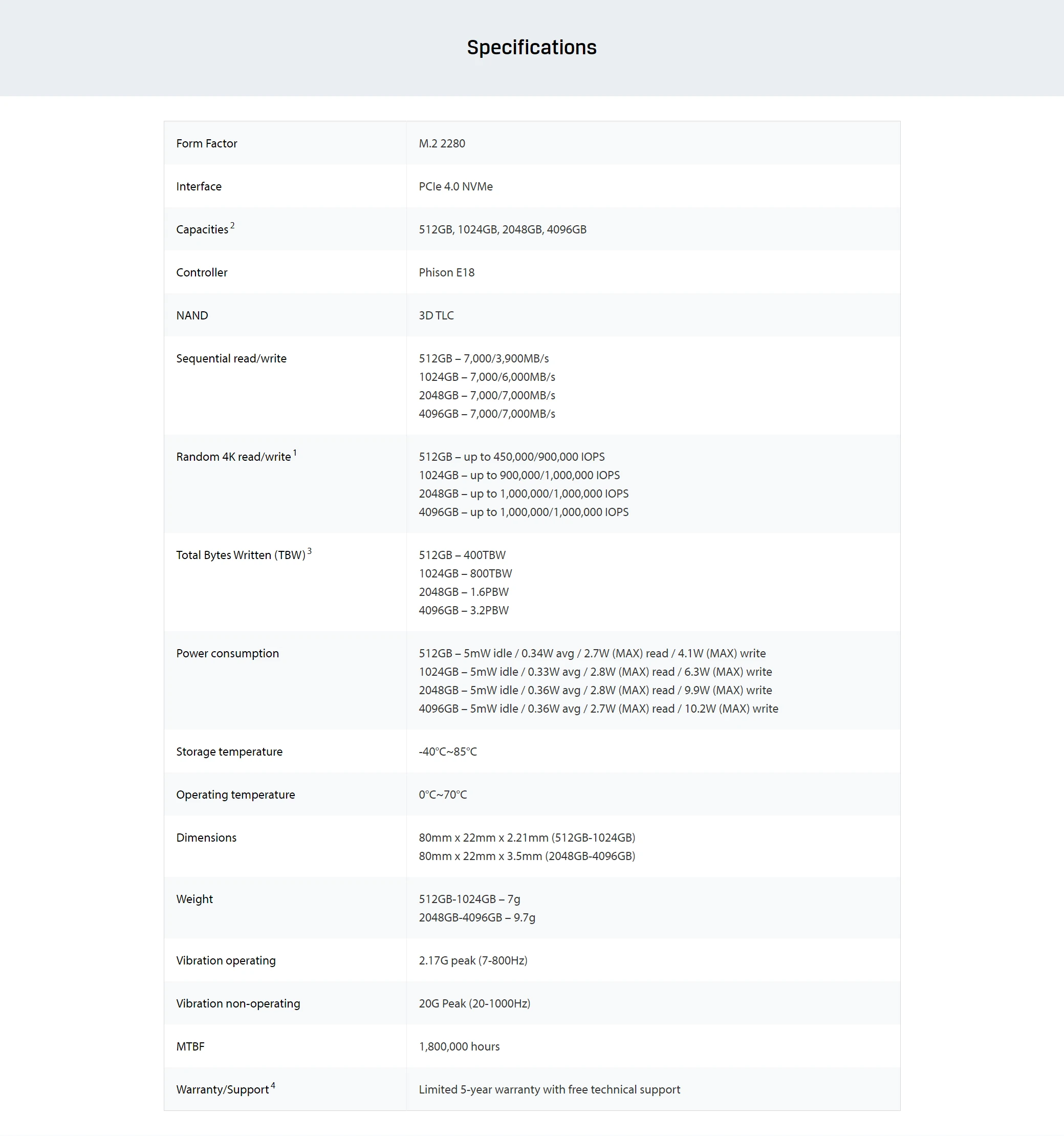 Capacidades completas disponibles desde 512GB-4096GB 2.Para cumplir con sus requisitos de almacenamiento de datos.