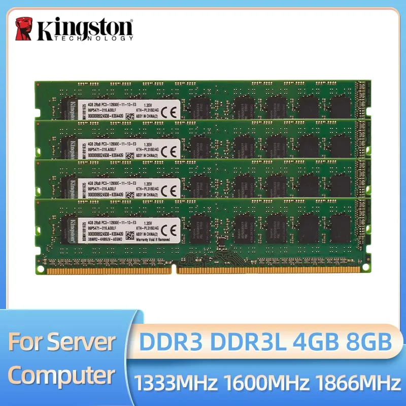 Kingston-Memoria RAM DDR3 de 8GB, 1333MHz, 1600MHz, 1866MHz, ECC, PC3L, 1,35 V, 1,5 V, ECC, estación de trabajo sin búfer