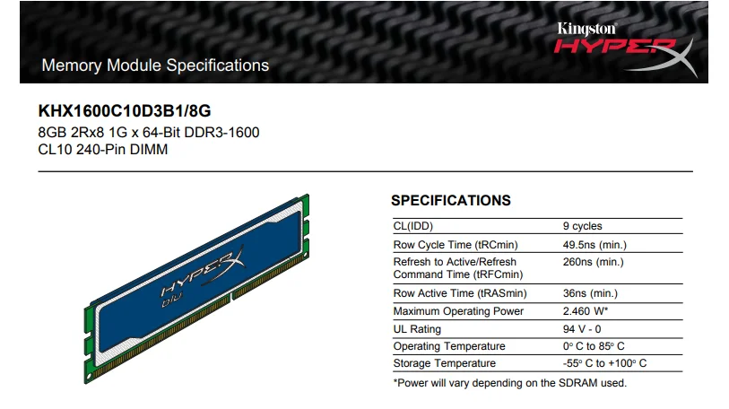 Comprar Kingston-módulo de Memoria RAM HyperX FURY para ordenador de escritorio, 4GB, 4G, 8GB, 8G, DDR3, PC3, 1600Mhz, 1600, 1866MHZ, 1866 RAM, usado