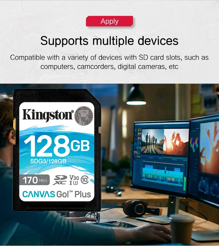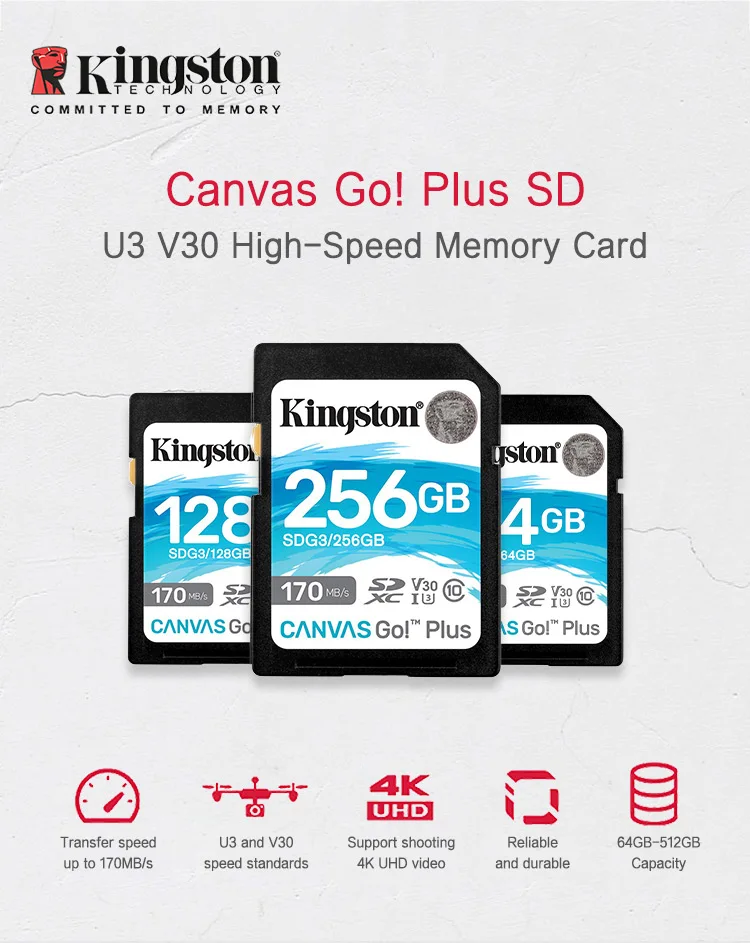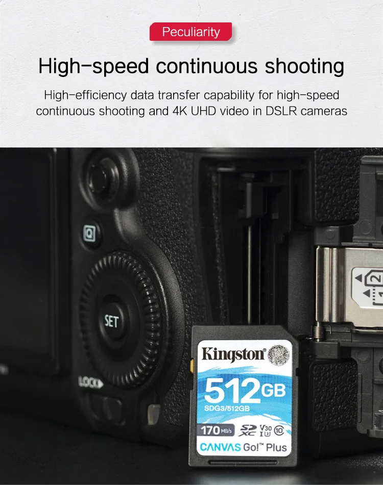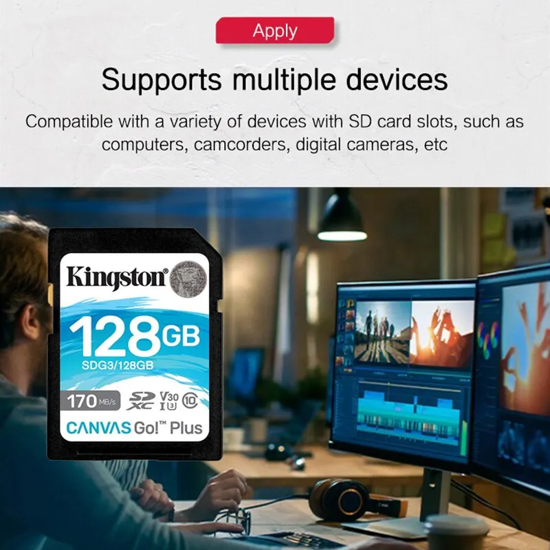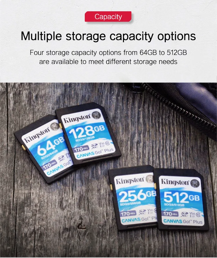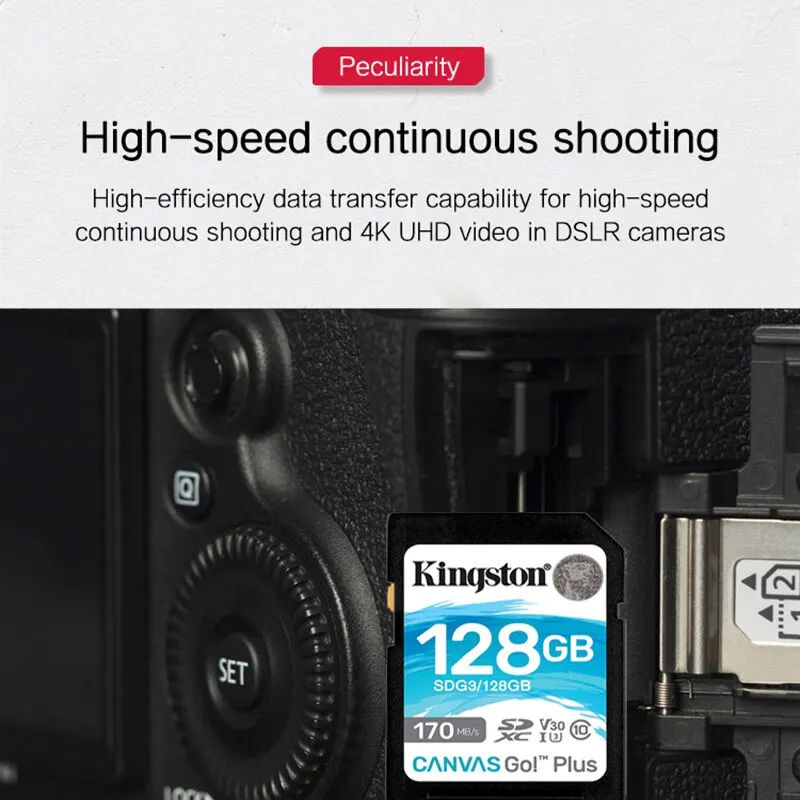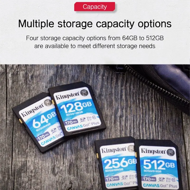 Comprar Kingston Tarjeta SD 64GB 128GB 256GB SDG3 Tarjetas de memoria de hasta 170 MB/s Read V30 U3 Flash Card C10 PARA LA Cámara