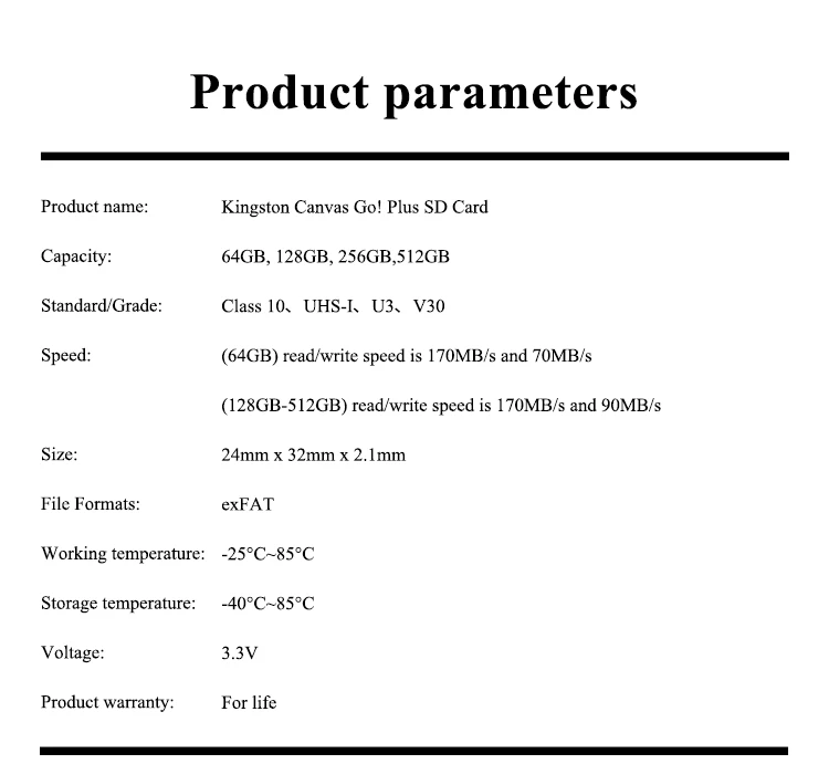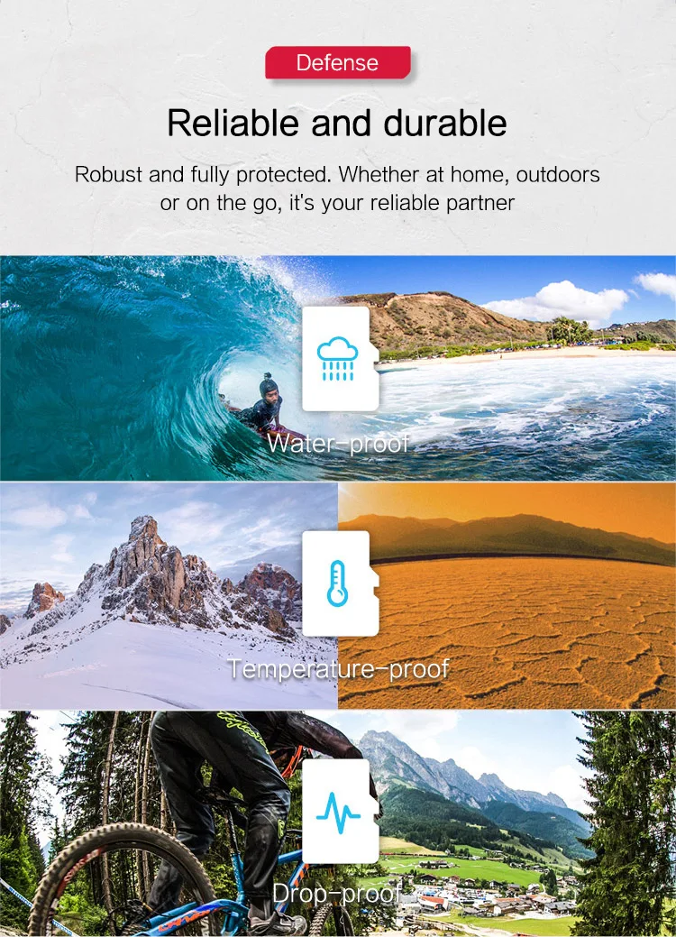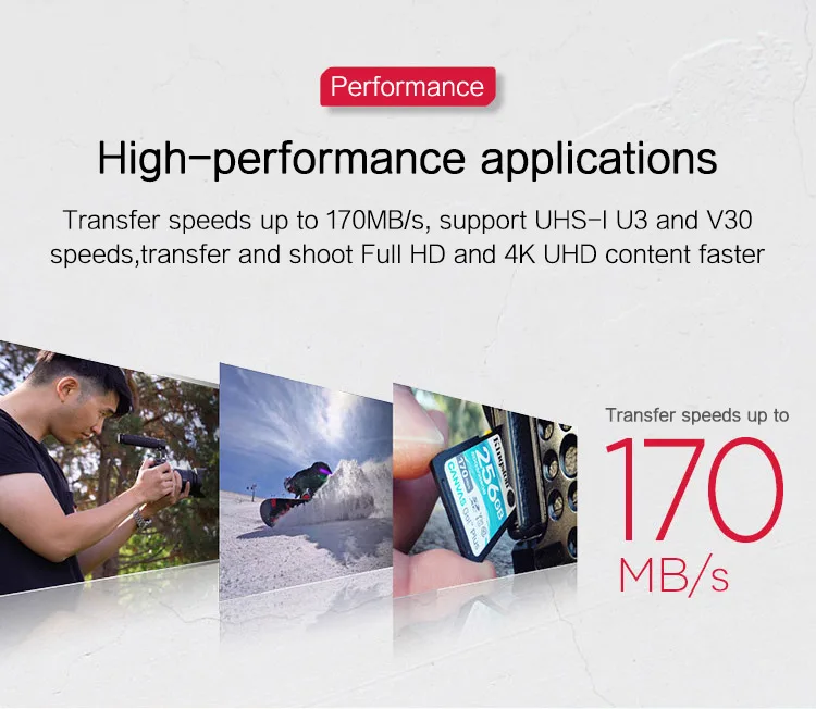 • Alta velocidad de lectura :Con velocidades de lectura de hasta 170 MB/s, esta tarjeta SD garantiza una rápida transferencia de datos y una rápida captura de fotos y vídeo.