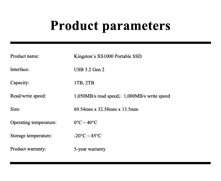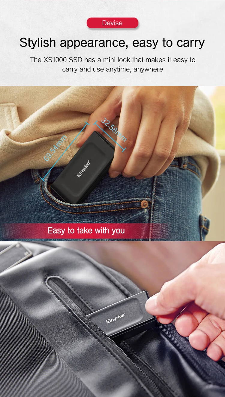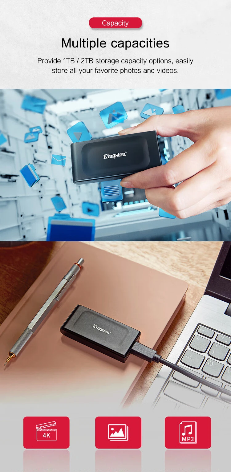 Comprar Kingston-unidad de estado sólido externa para PC, disco duro portátil de hasta 1050 Mb/s, PSSD XS1000 USB3.2 Gen 2 SSD 1TB 2TB