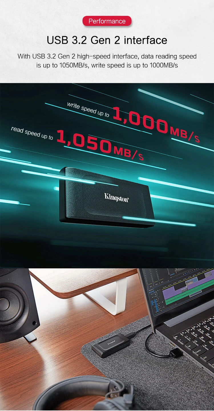 Comprar Kingston-unidad de estado sólido externa para PC, disco duro portátil de hasta 1050 Mb/s, PSSD XS1000 USB3.2 Gen 2 SSD 1TB 2TB