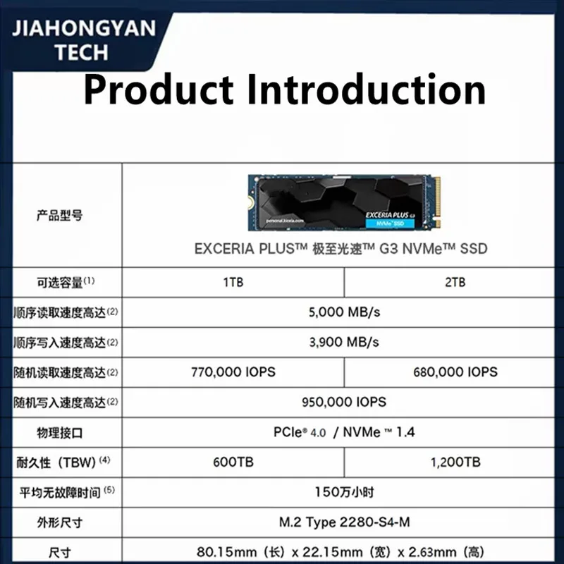 Para Kioxia SD10 1TB 2TB Unidad de estado sólido Velocidad PCIe 4.0 NVME M.2 2280 Disco duro SSD Adecuado para computadoras de escritorio y portátiles