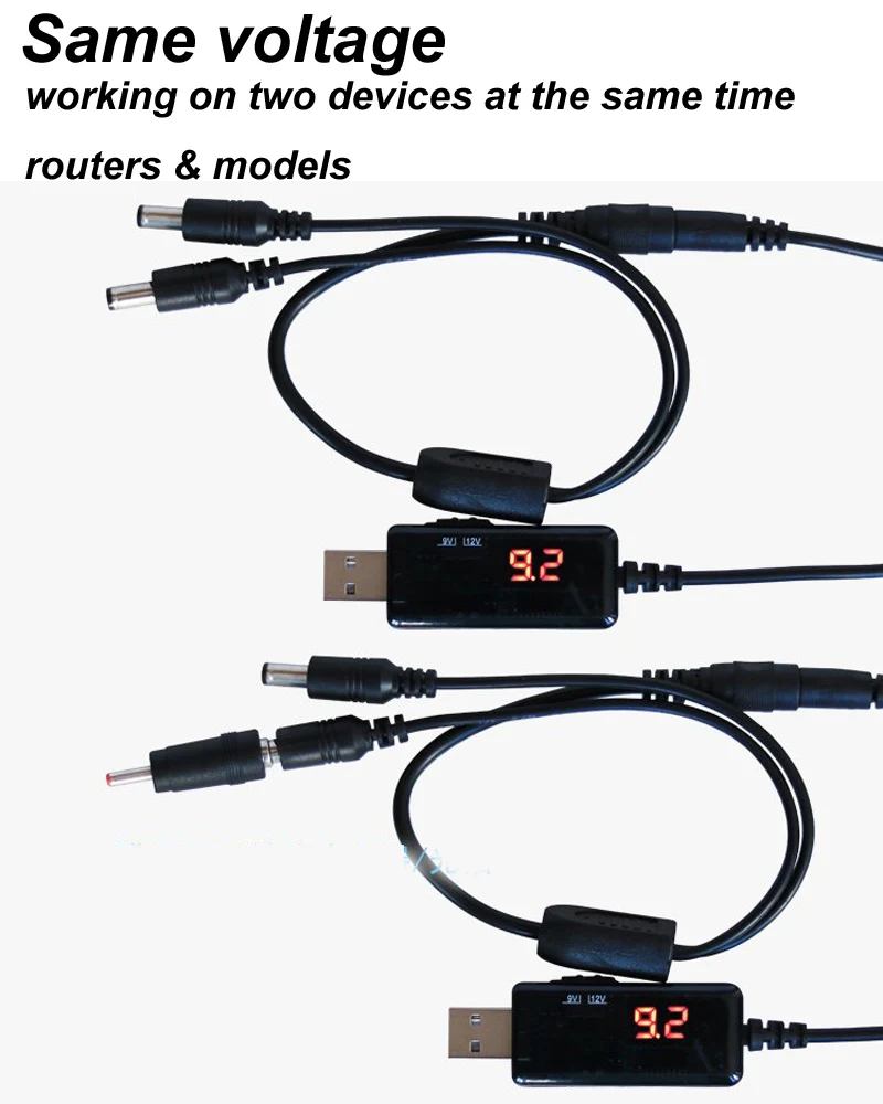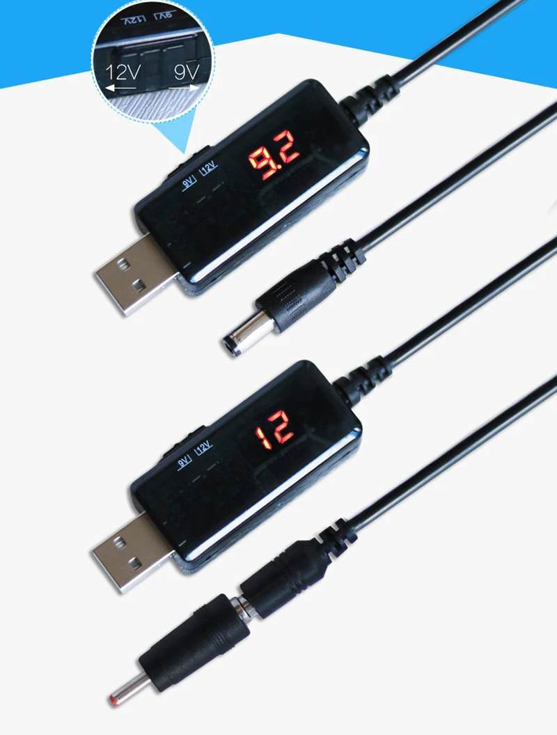 Comprar Kit 3 en 1 USB Boost DC 5V a 9V 12V USB Step-up Cable convertidor + 8 Uds 55*21MM enchufe + 1 a 2 para MODELO DE enrutador cargador de fuente de alimentación