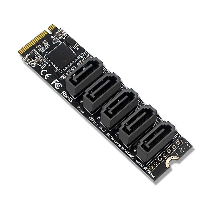Comprar Kit de 5 discos duros externos, módulo de fuente de alimentación de DC-SATA, tarjeta adaptadora M.2 NVME a 5SATA, cable de alimentación, línea de datos, HDD, SSD, secundario