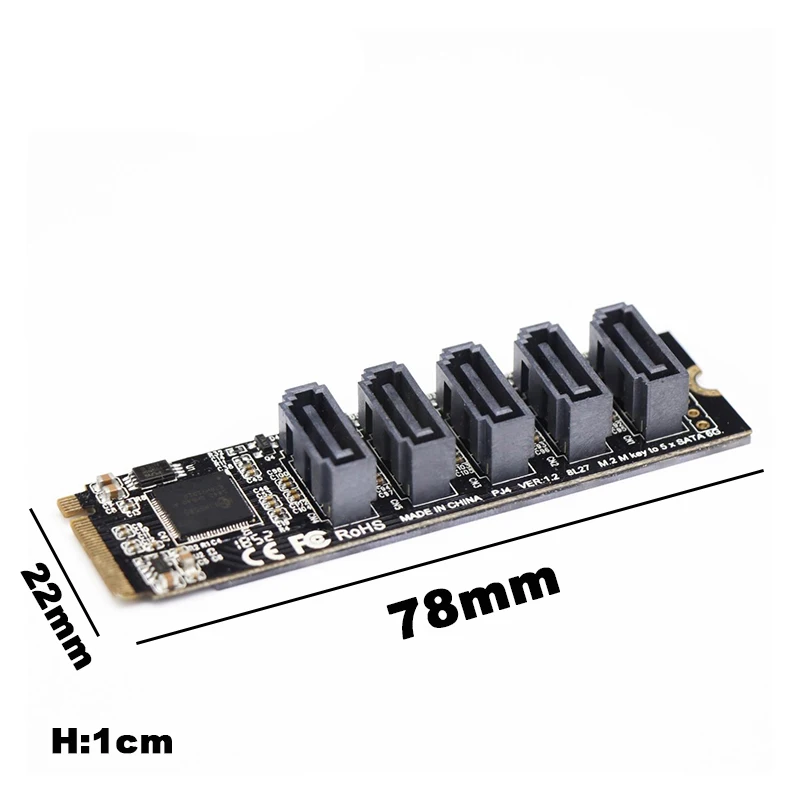 B:1 Placa de alimentación DBK 8234 (línea de señal SATA) con 5 líneas PSU SATA + 1 tarjeta de expansión M.2 Key M SATA3.0 + línea de datos SATA de 5x7 pines