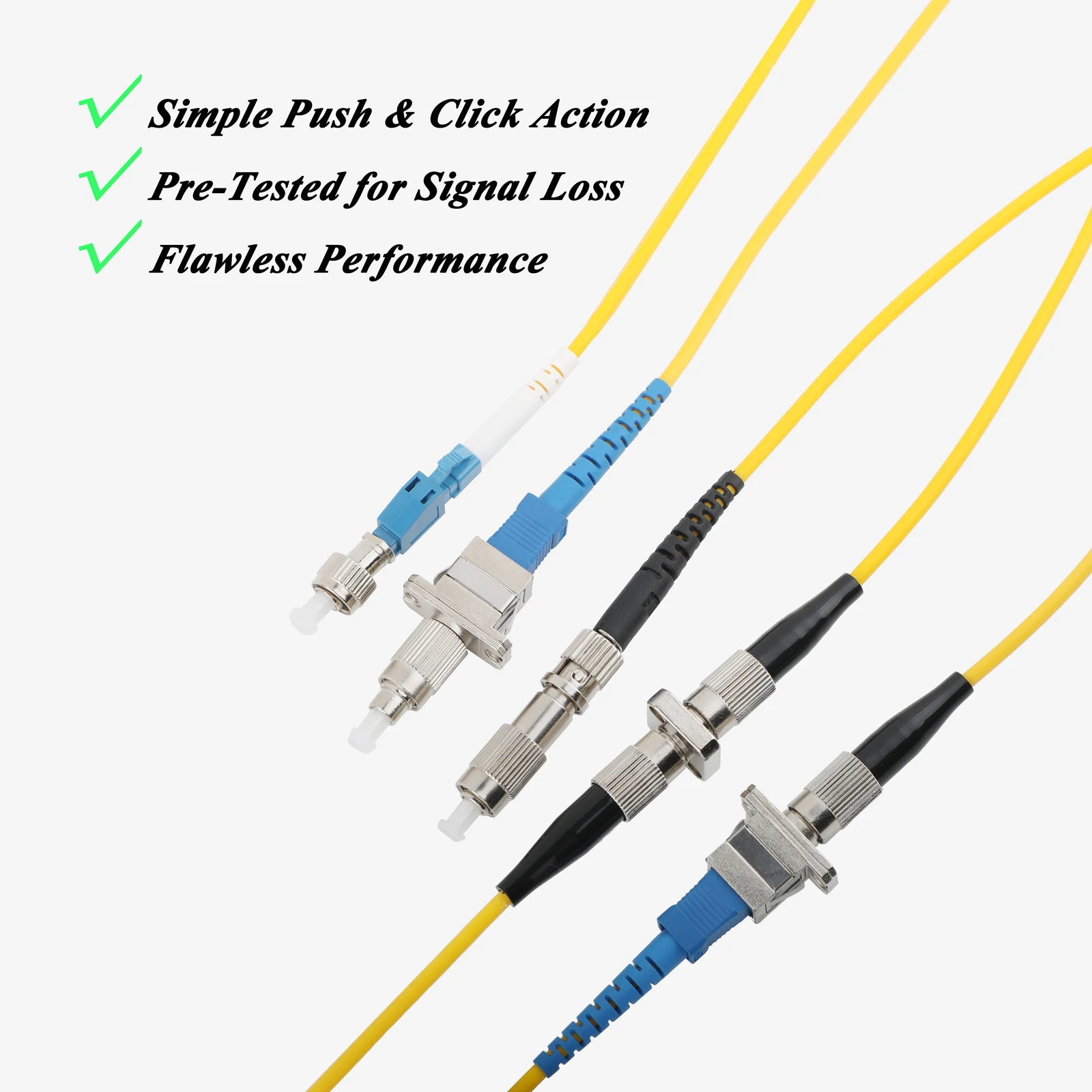 1.Contiene 5 adaptadores de fibra: incluye 10x FC/UPC hembra a ST/UPC hembra, 10x FC/UPC hembra a ST/UPC hembra, 8x FC/UPC macho a SC/UPC hembra, 8x FC/UPC macho a LC/UPC hembra, y 6 adaptadores de fibra óptica FC/UPC macho a LC/UPC hembra en un organizador de estuche.