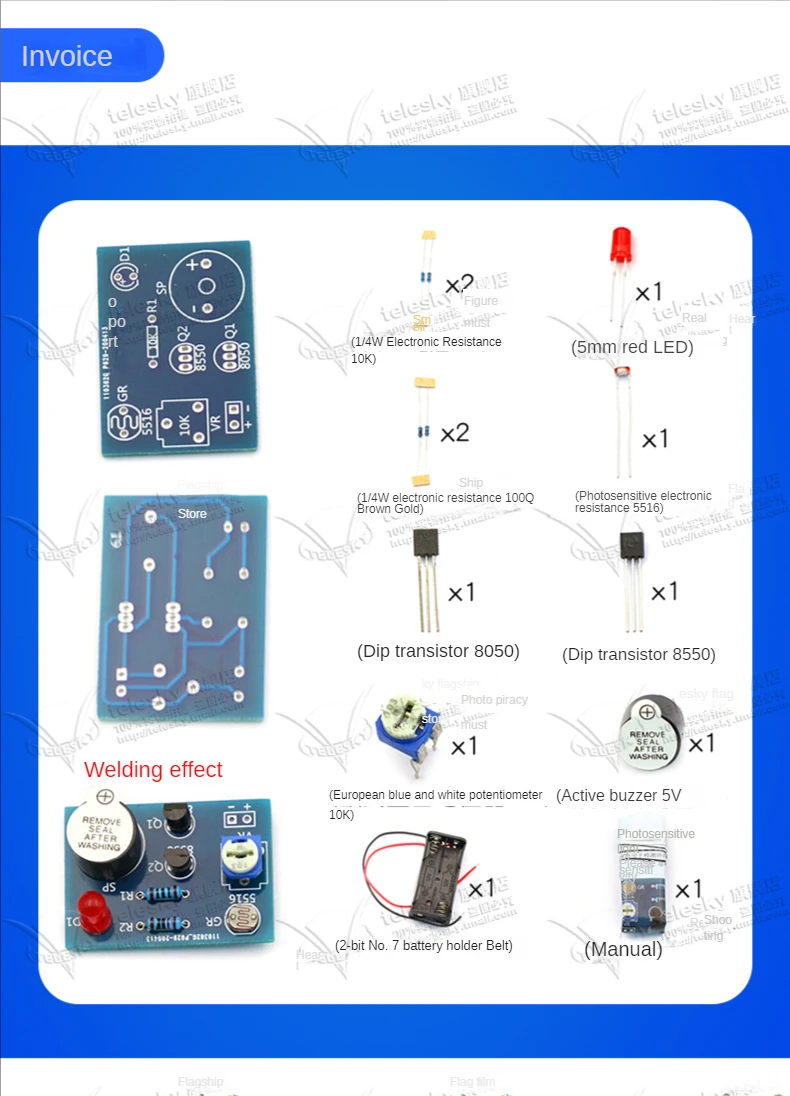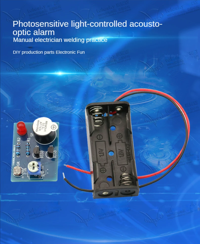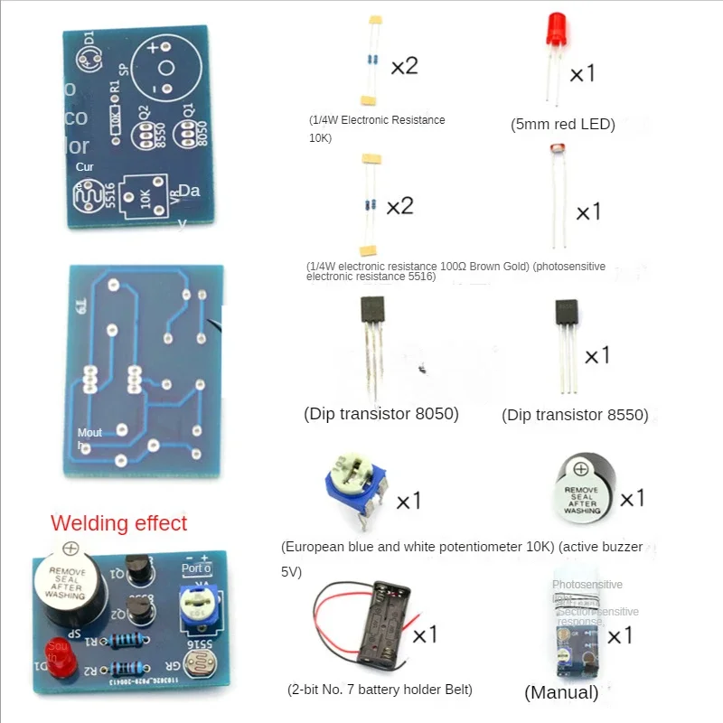 Kit de alarma de luz y sonido controlado sensible a la luz, práctica de electricista hecha a mano, producción electrónica divertida de bricolaje, piezas sueltas