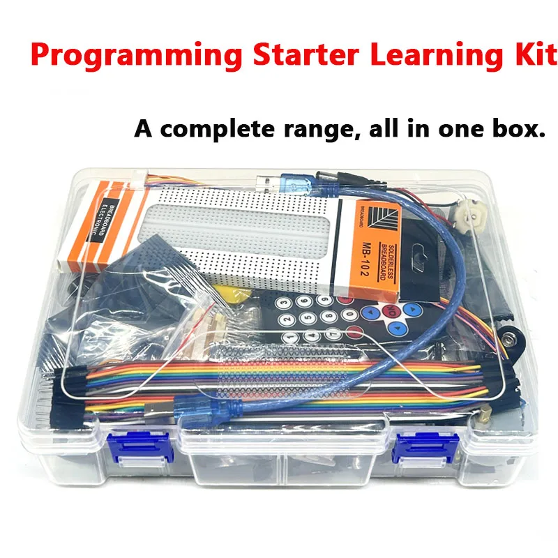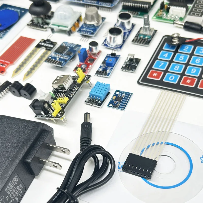 Además, ofrecemos más de 60 tipos de componentes y sensores, desde piezas pequeñas como diodos LED, resistencias y potenciómetros hasta piezas grandes como LCD1602, módulo RFID y placa de pruebas de 830 puntos de conexión, que satisfacen sus demandas para sus diferentes proyectos, ya sea simple o complejo.