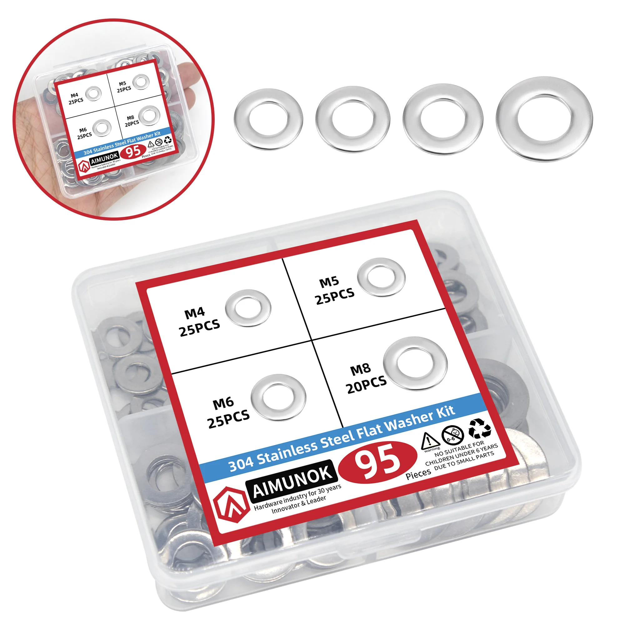 Kit de arandelas planas de acero inoxidable 304, 95 Uds., M4, M5, M6, M8, arandelas planas, anillos de junta plana, Hardware liso, arandelas de Metal