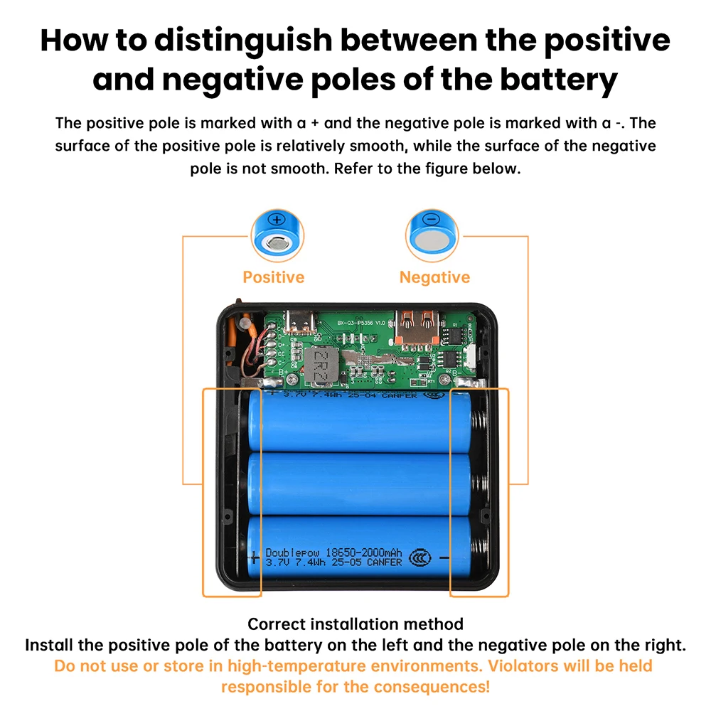 1.Diseño sin soldadura para una fácil instalación, ideal para que los entusiastas del bricolaje y los principiantes en electrónica comiencen rápidamente 2.Tiene capacidad para 3 baterías 18650 para cumplir con los requisitos de energía, adecuadas para diversos escenarios