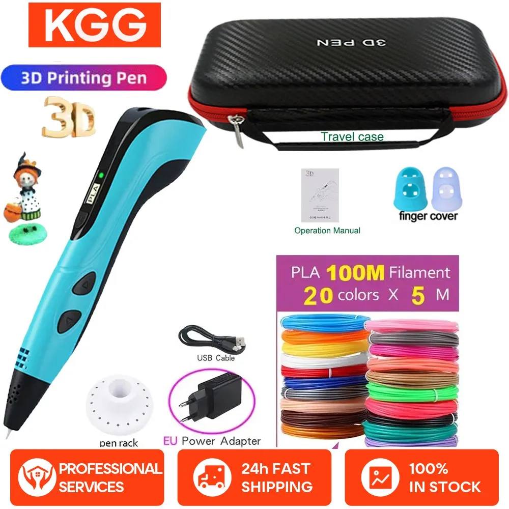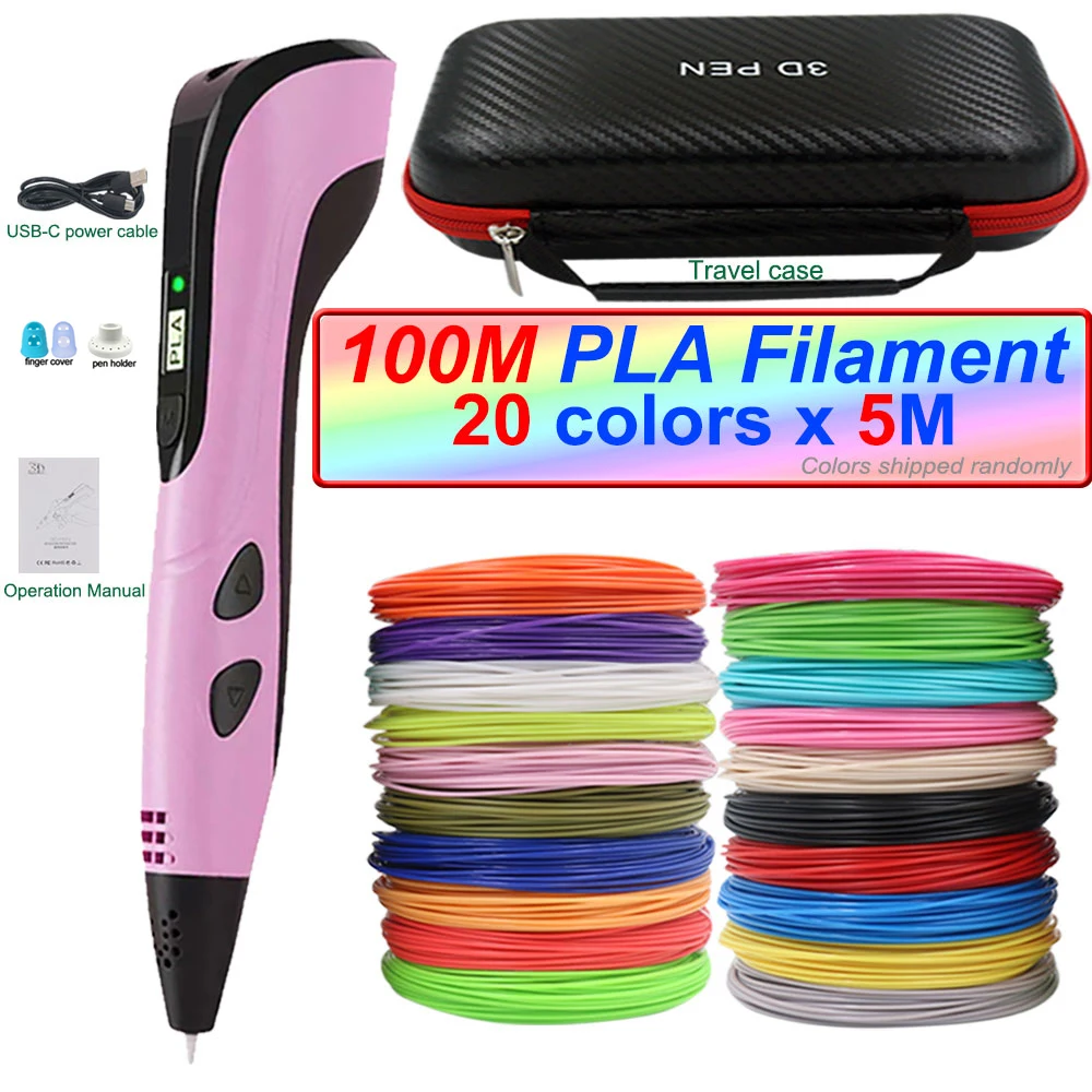 Comprar Kit de bolígrafo de impresión 3D con pantalla LCD, bolsa de cuero con filamento PLA de velocidad Variable, adaptador de corriente europeo, juego de bolígrafos 3D para niños.