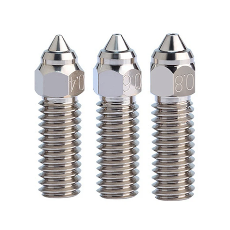 Niquelado uniforme, extrusión más suave: La capa niquelada en la superficie reduce en gran medida la adhesión de los filamentos a la boquilla y una extrusión más suave. X Aplicable a la mayoría de materiales FDM como PLA, ABS, PETG, TPE, TPU, PC, etc., y PEEK, PEKK, PEI, PSU, PPSU y otros filamentos de alta temperatura