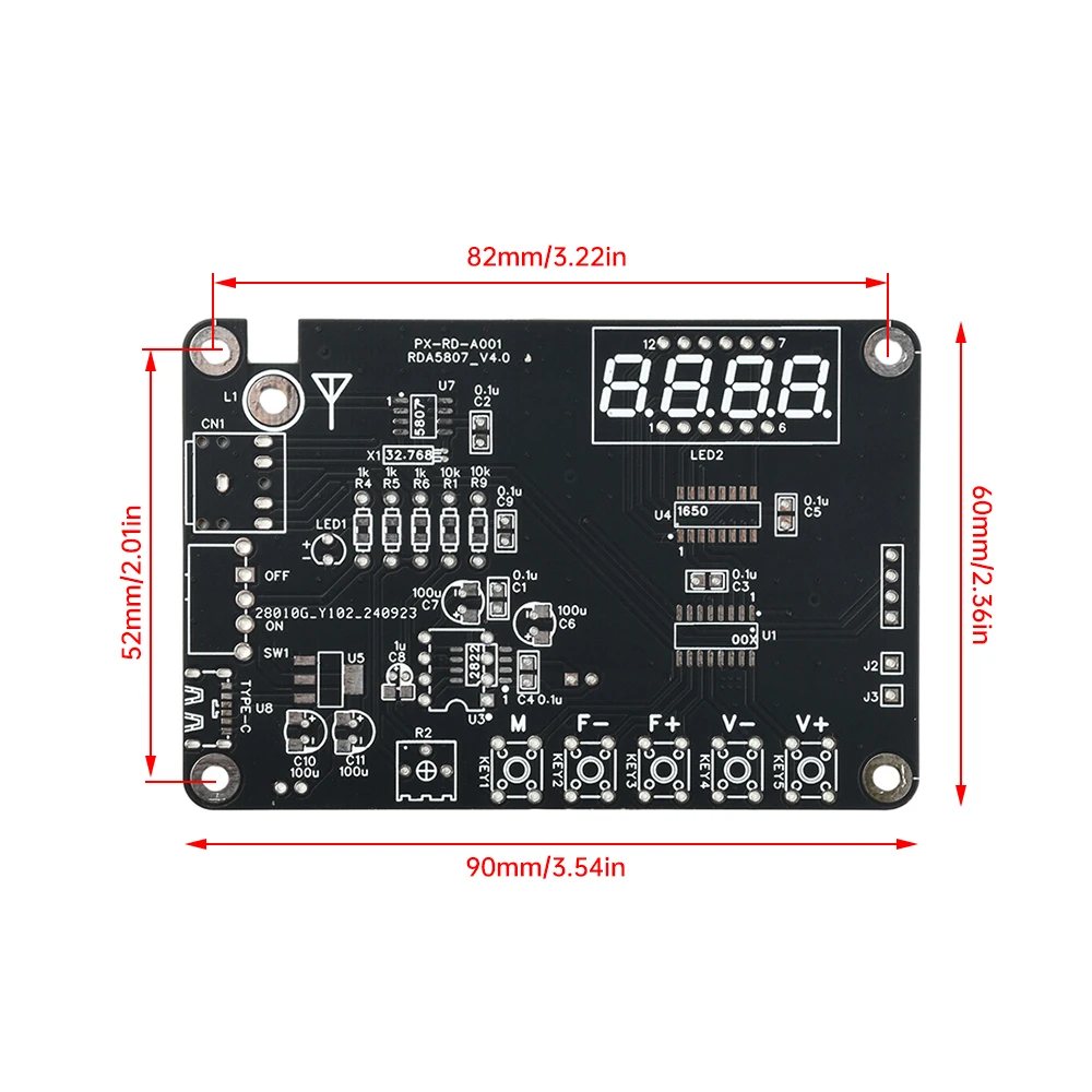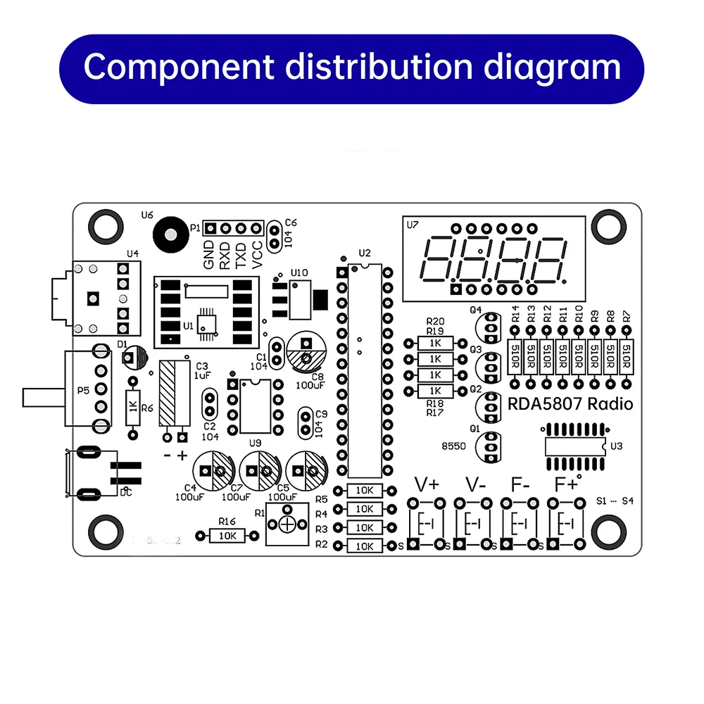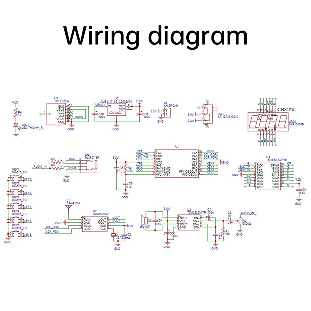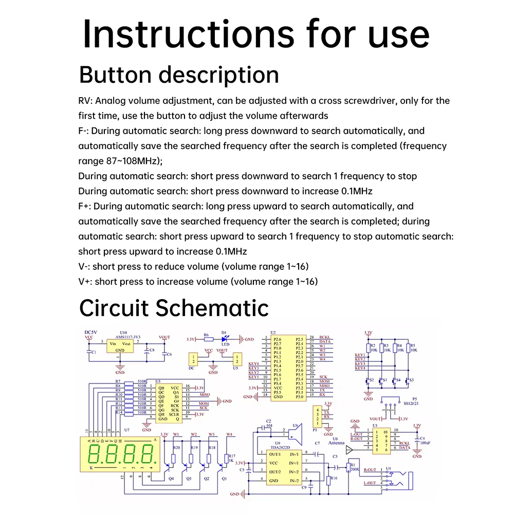1.Usando el chip de control maestro ARM de 32 bits, aplicando el chip de radio RDA5807M, con efecto compatible con banda receptora FM global de 87-108MHZ