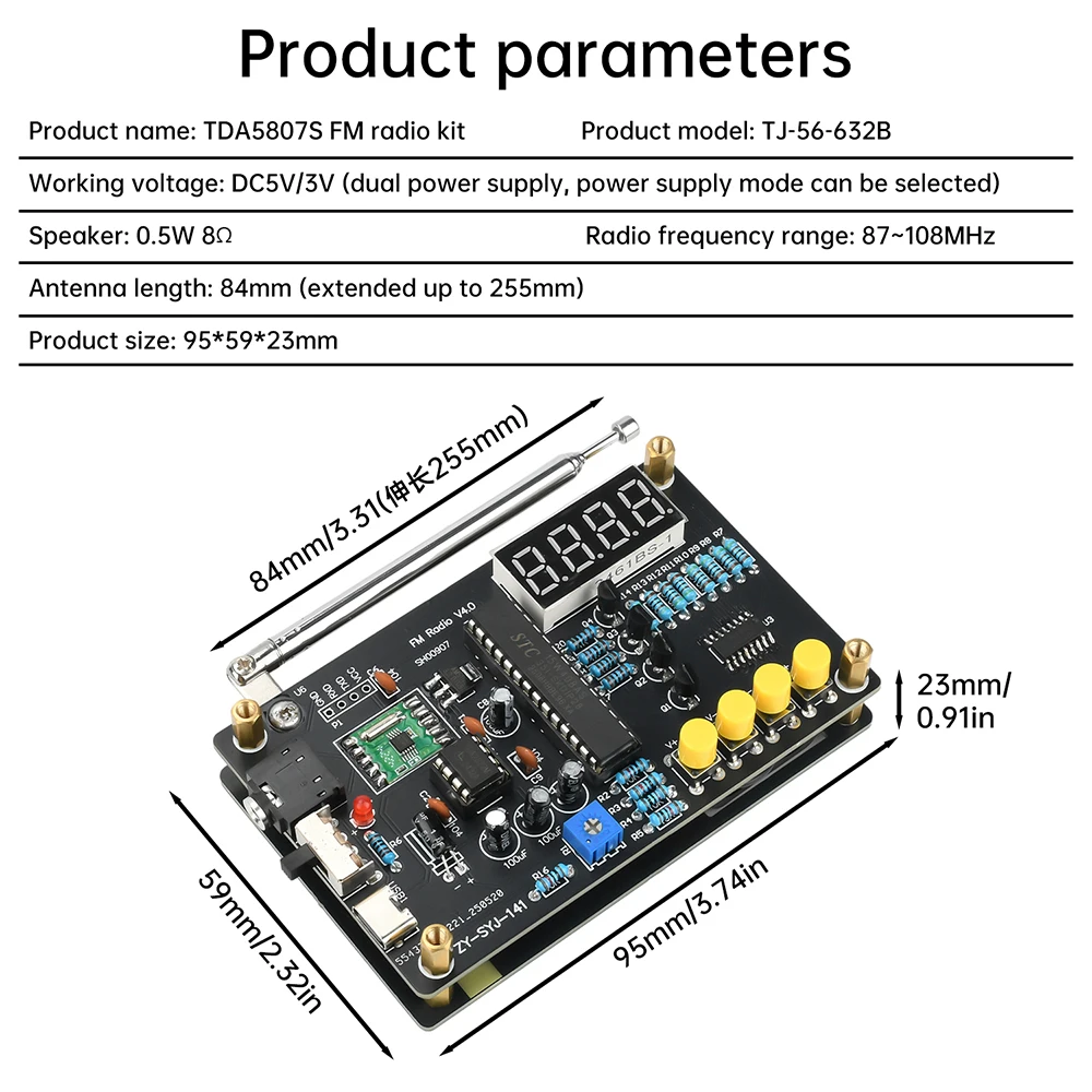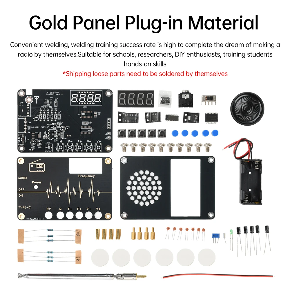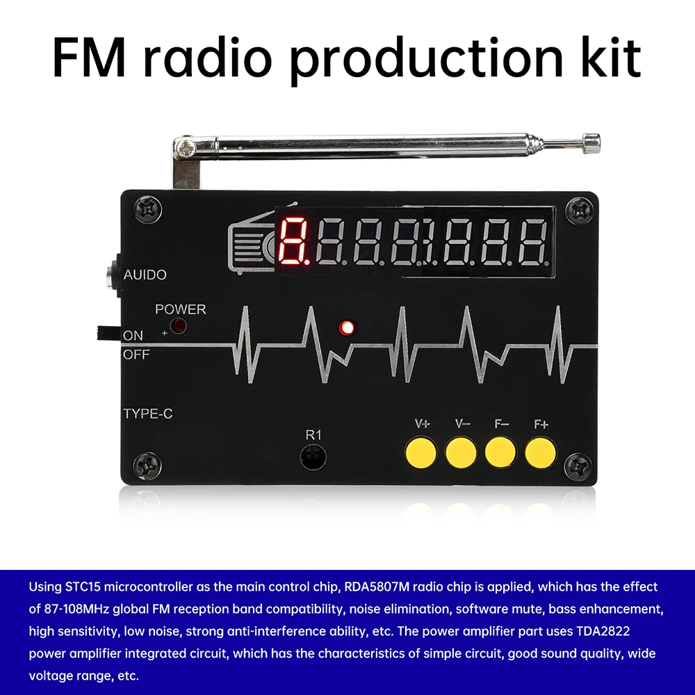 Comprar Kit de bricolaje de radio FM con chip RDA5807M para 87-108MHz, proyecto electrónico de soldadura para principiantes, tipo C y alimentado por batería