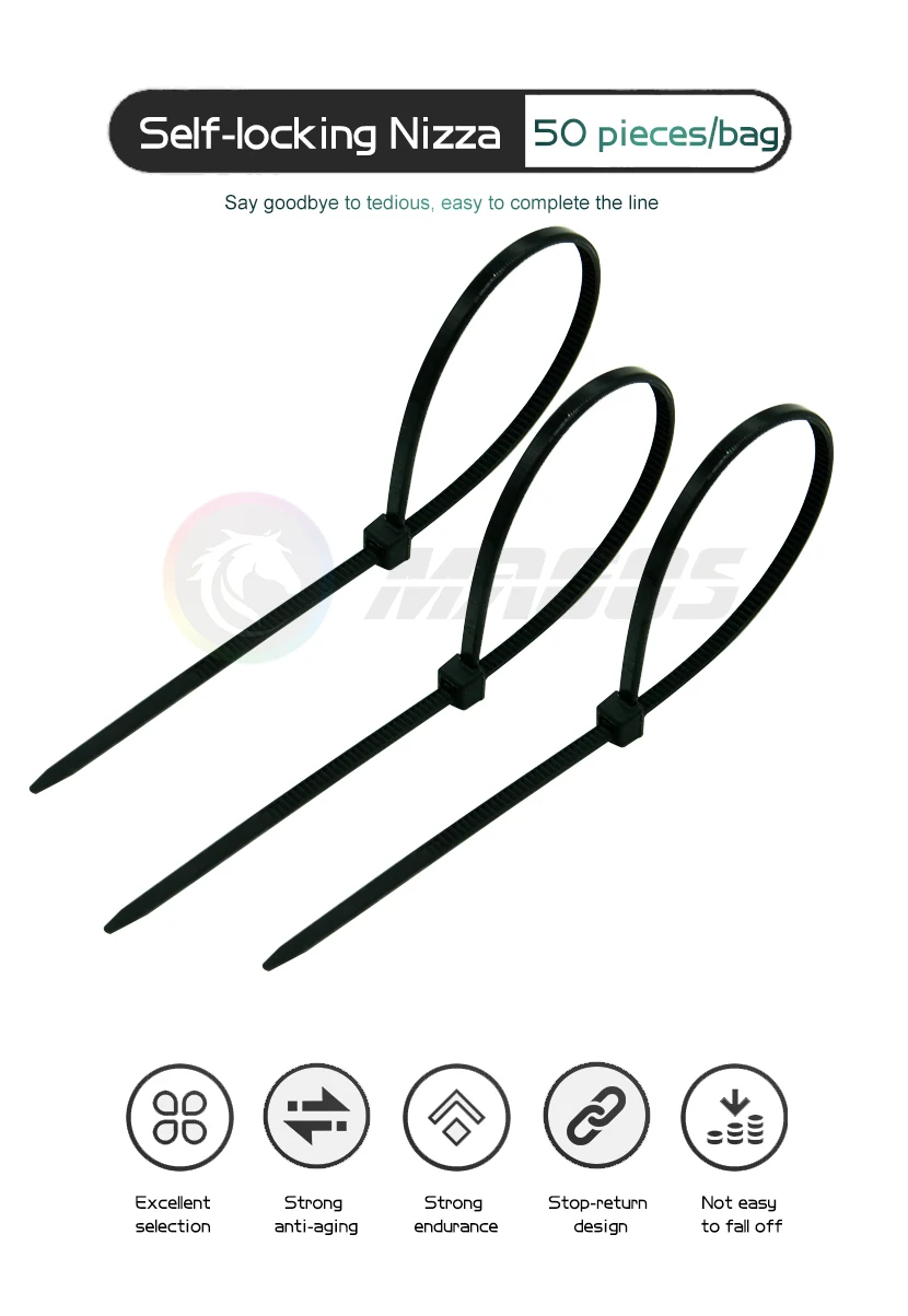 Kit de bridas para cables de ordenador de escritorio, gestión de cables de nailon, plástico autoblocante, 50 Uds., anillo de sujeción de 3x150mm, componentes para PC