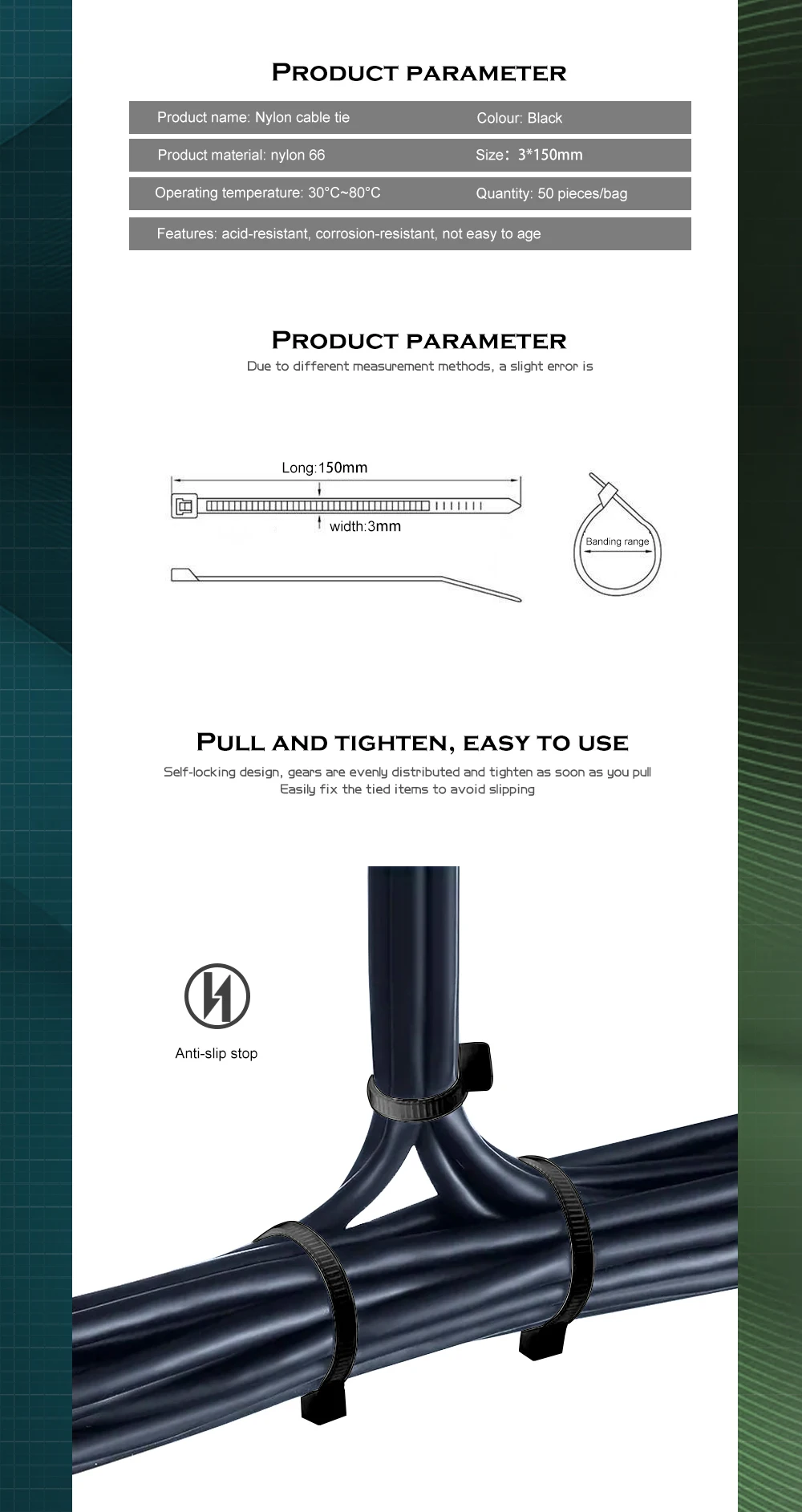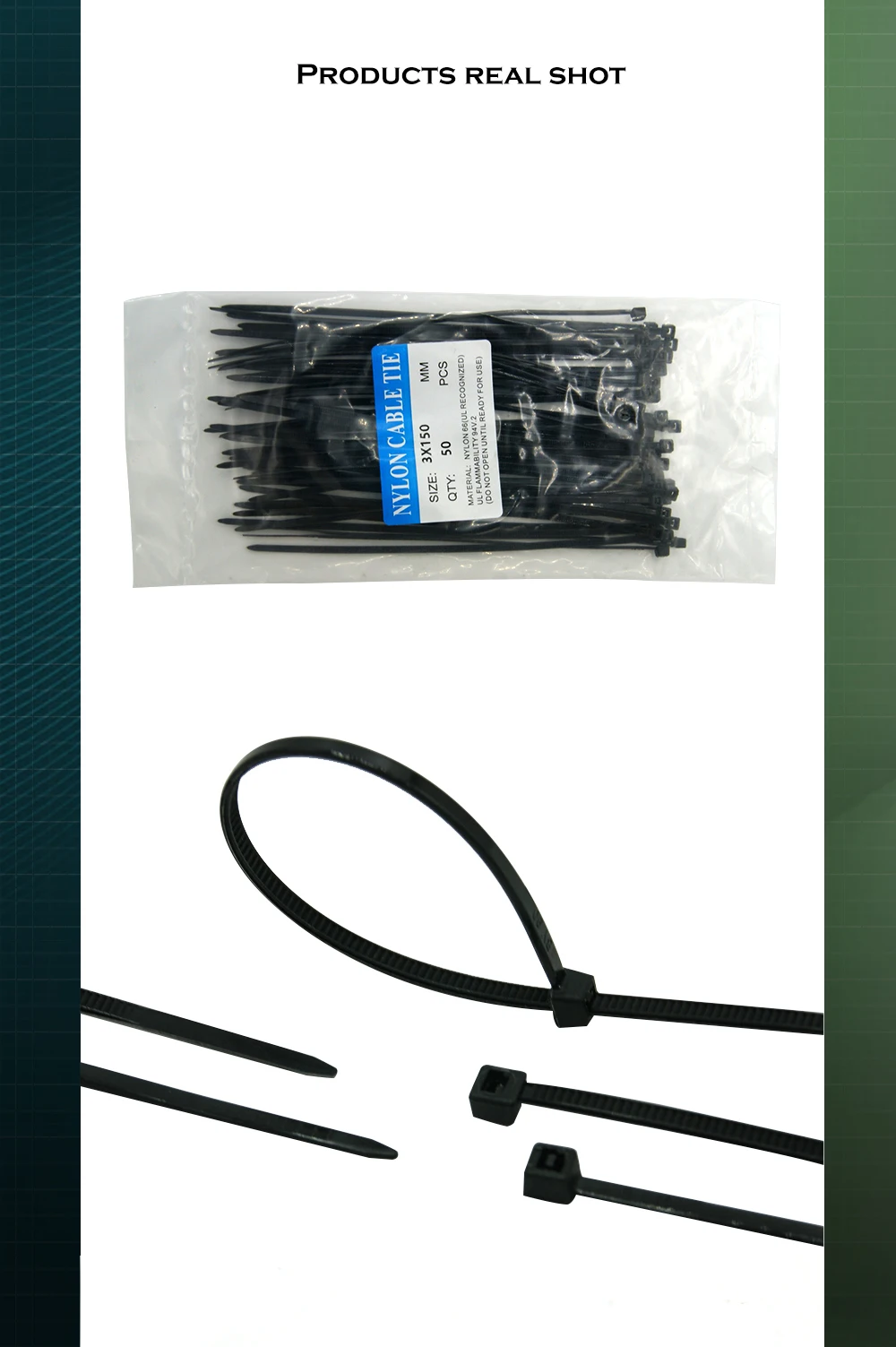 Kit de bridas de cinta para gestión de cables PSU, caja de computadora, anillo de sujeción autoblocante de plástico de 3x150mm, negro, 50 unidades por paquete