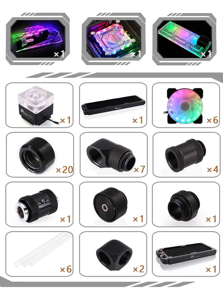 Es una solución de canal de agua de tablero acrílico.Úselo únicamente para la carcasa de la computadora IN WIN 909(sin carcasa de computadora ni consejos, solo kit de piezas de refrigeración por agua)Listado de paquetes: