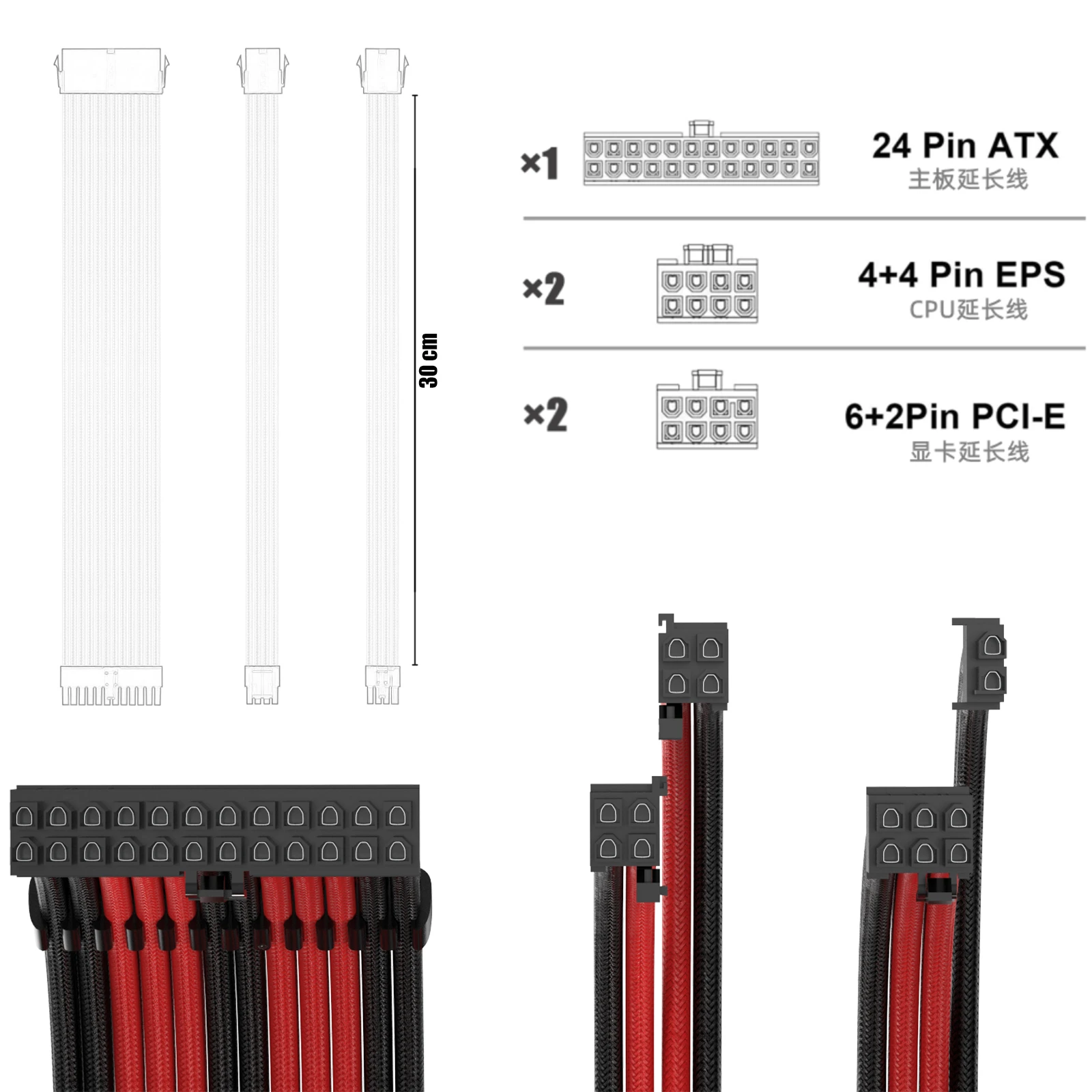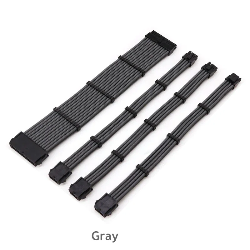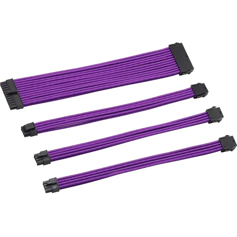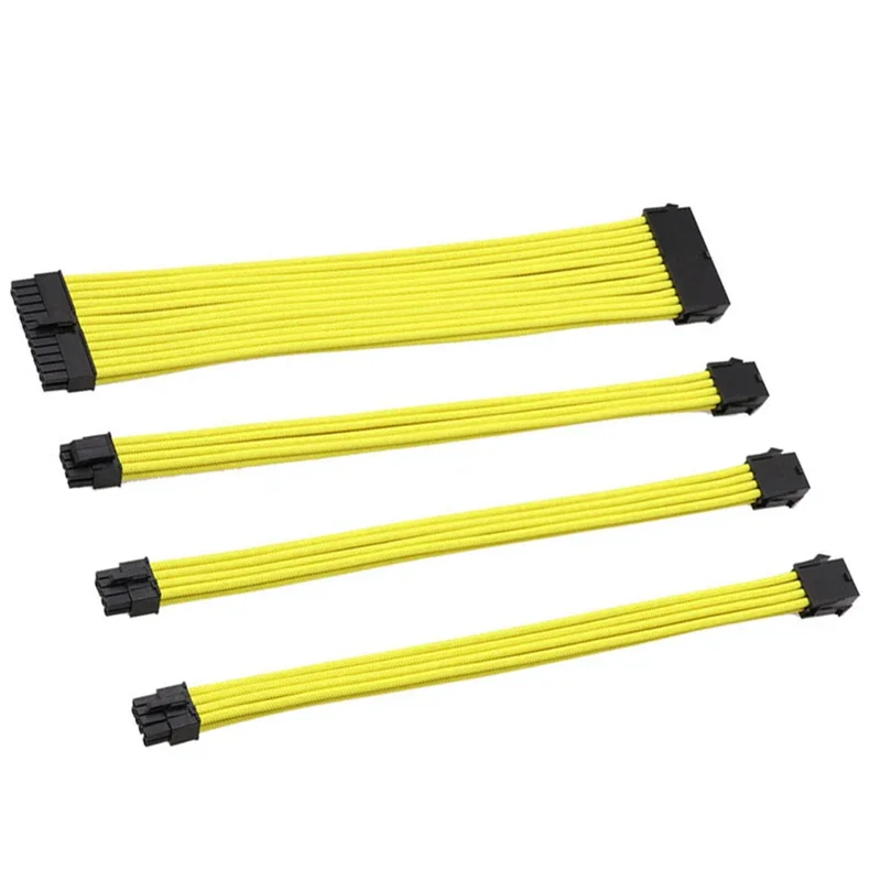 Kit de cable de extensión PCI-E ATX de 18AWG, cable de alimentación de extensión PSU con funda hembra a macho de 24 pines/EPS 4 + 4 pines/PCI-E de 8 pines