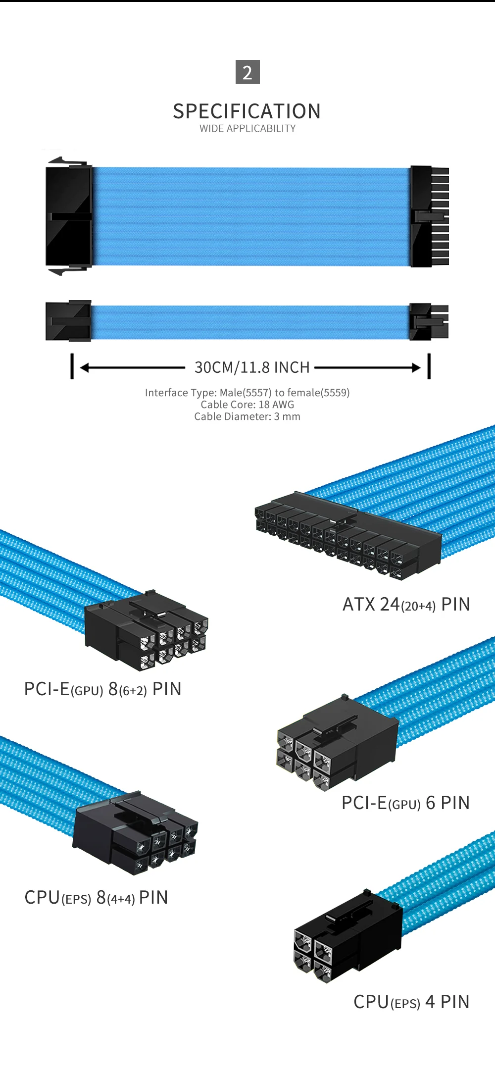 3.Cada cable tiene dos peines.*El color del peine está sujeto a la imagen del kit de cables.Si necesita cambiar a peines de otro color, comuníquese con el servicio de atención al cliente.