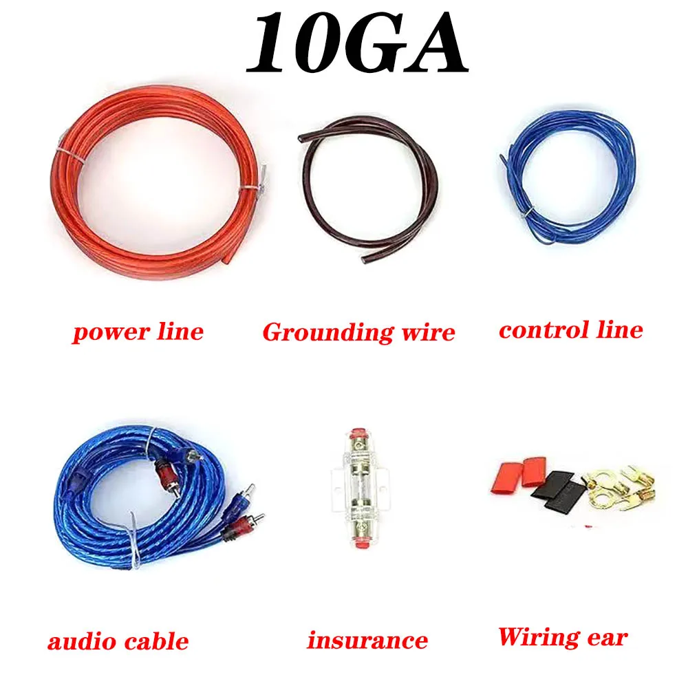 Kit de cableado de altavoces de Audio de 1500W, Cable de subwoofer de coche 10GA, portafusibles de 60 amperios, cables de instalación de altavoz 10GA para modificación de coche