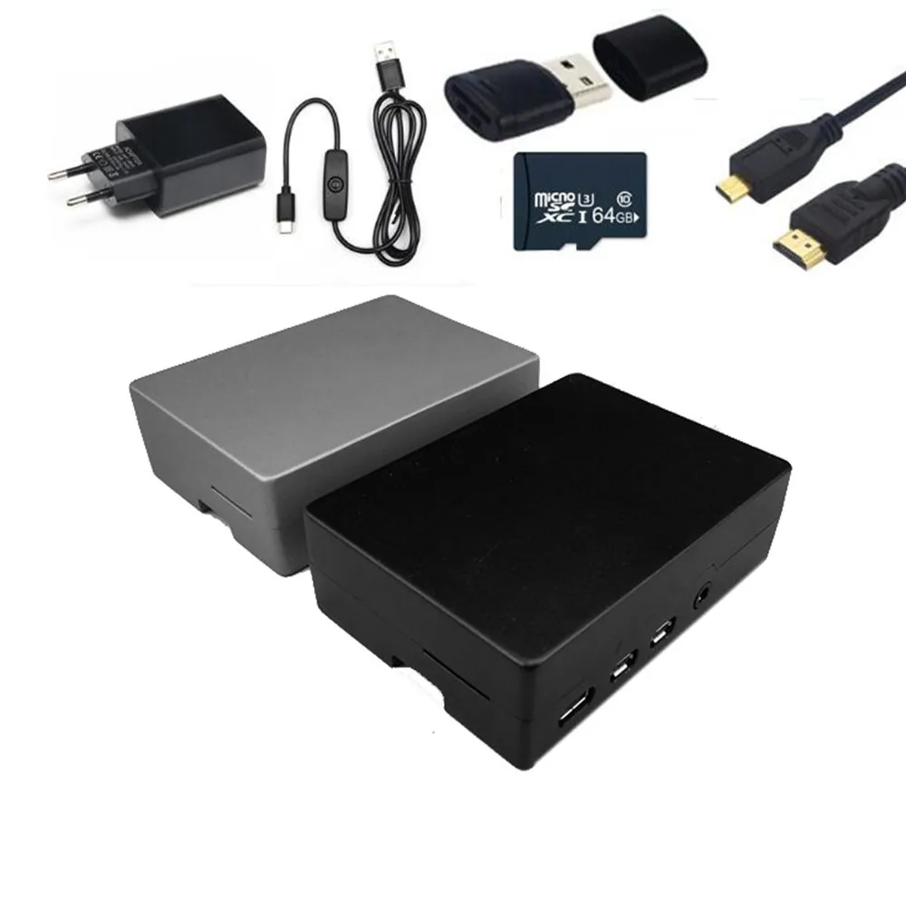 Comprar Kit de carcasa para Raspberry PI 4, carcasa de aluminio, adaptador de corriente de 5V, 3A, Cable de tarjeta Micro SD de 64G para Raspberry Pi 4 Modelo B