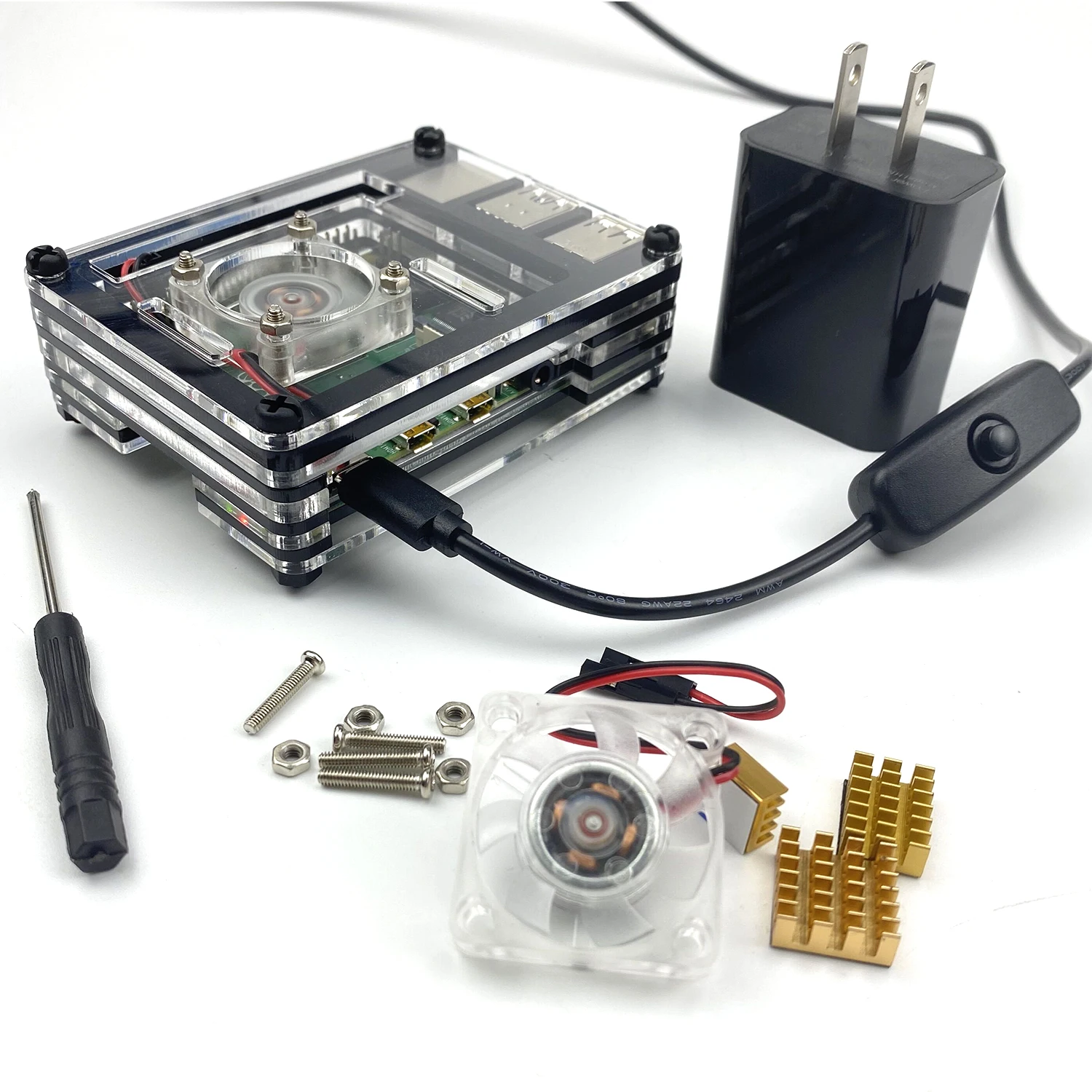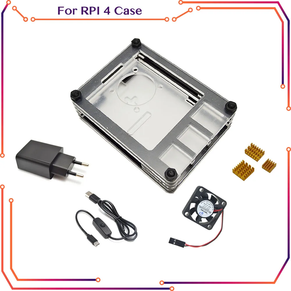Comprar Kit de carcasa Raspberry Pi 4 con disipador de calor, ventilador de refrigeración y cable USB tipo c con interruptor de encendido/apagado y fuente de alimentación RPI107