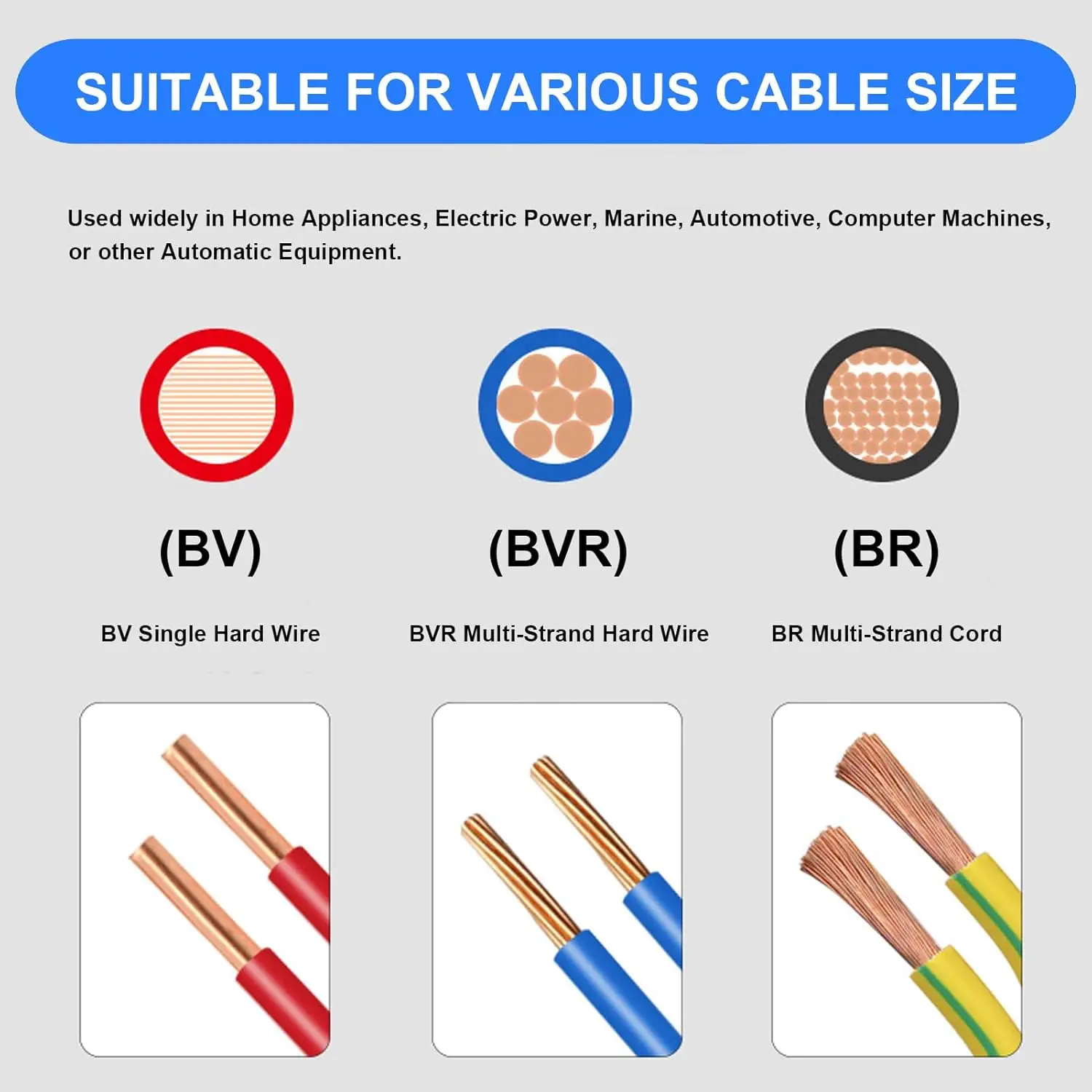 【Amplia aplicación】 El kit de casquillos de alambre podría usarse ampliamente en electrodomésticos, automóviles, industria eléctrica, equipos mecánicos, gabinetes de distribución de energía, etc.
