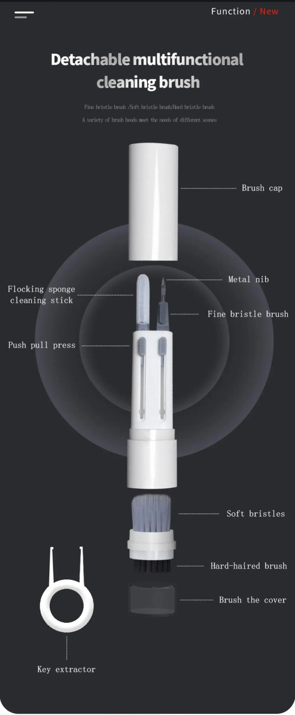 4. Está equipado con extractor de llaves, limpiador de auriculares, spray, limpiador de pantalla y otras funciones.