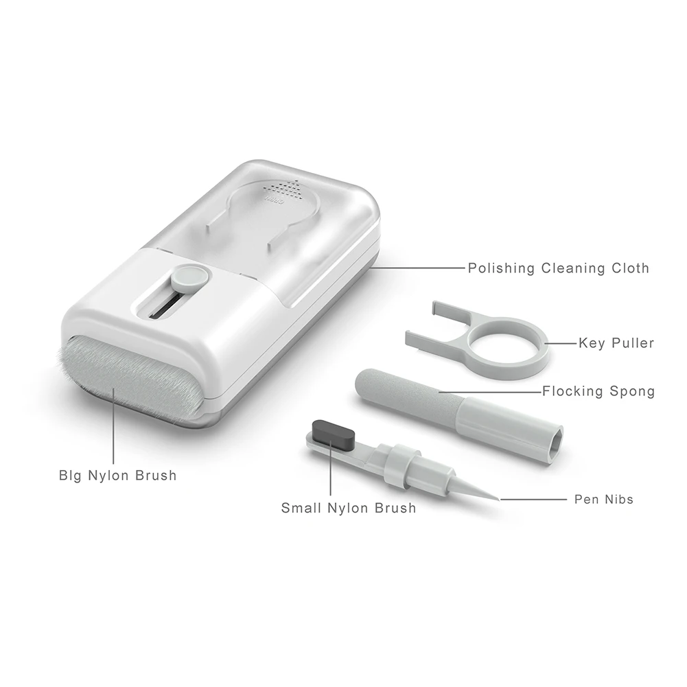 Feature: 6-in-1 Kit: The cleaning kit contains nibs, wipes, flocked sponge sticks, key pullers, brushes, key pullers, large bristle brushes, and more to clean cracks, stains, limescale particles, dust, and pull-out keycaps. High-quality material: The cleaning brush is made of high-quality ABS+PC+nylon fiber+polishing cloth material, which is environmentally friendly, has no peculiar smell, and is durable. Will not hurt keyboards, headphones, etc., moderate hardness, good elasticity, easy to clean your digital devices Versatile Design: The tip removes stubborn stains in the crevices of headphones, buttons and other items. The high-density brush removes dirt and dust from the headphone sound hole. The flocked sponge removes dust from the earphone charging case. Wipes are used to clean large dusty areas such as keyboards, desks, window rails, etc. Retractable Design: With a brush sliding switch, one end of the multifunctional cleaning pen is divided into a brush. It can be used after launch, which is convenient and worry-free, and it also comes with a tool storage compartment, so you don't have to worry about losing it. Deep cleaning: The keyboard cleaning brush kit comes with a mechanical keyboard key puller, use the key puller to remove the keycaps, then use the brush to clean the keyboard more thoroughly. At the same time, it is also very convenient to replace the keycaps. Specification: Product name: Multifunctional six-in-one headphone and keyboard cleaning kit Material: ABS+PC+Nylon fiber+Polishing cloth Color: grey Applicability: Compatible with most wireless Bluetooth-compatible headsets on the market, as well as cell phone handsets, microphones, computers, digital cameras, keyboards, etc. Net weight: 68g Gross weight: 80g Size: 105*50*29.5mm Packing size: 108*57*34mm Note: Due to the different monitor and light effect, the actual color of the item might be slightly different from the color showed on the pictures. Thank you! Please allow 1-2cm measuring deviation due to manual measurement. 1x Keyboard Cleaning Kit ![]() ![]() ![]() ![]() ![]() ![]() ![]() ![]() ![]() ![]() ![]() ![]() ![]() ![]() ![]() ![]() |