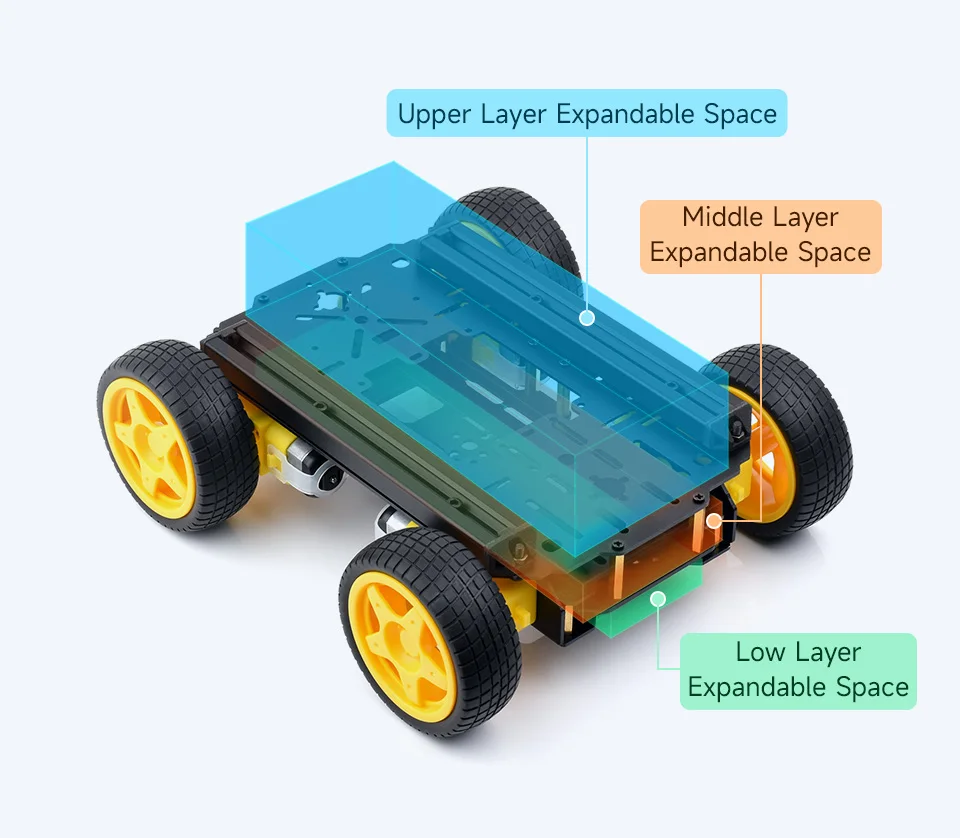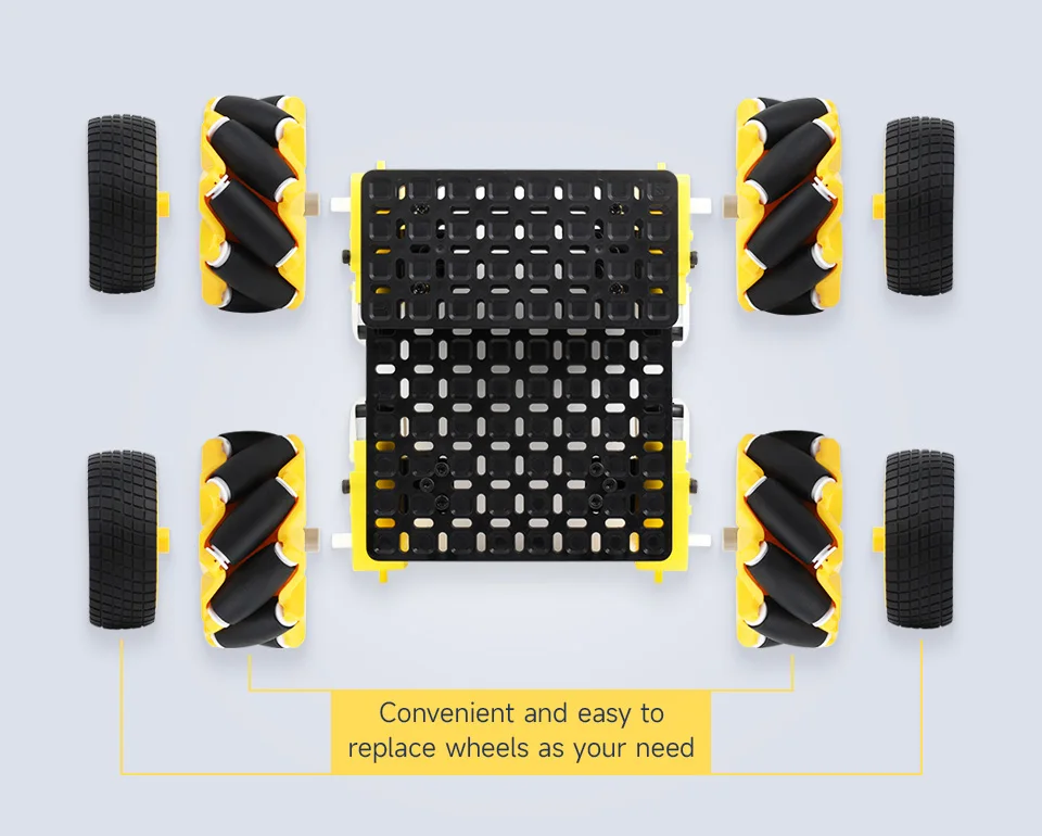 La tracción en las cuatro ruedas proporciona mayor potencia y estabilidad, y las ruedas normales también se pueden reemplazar con ruedas mecánicas para una maniobrabilidad más flexible