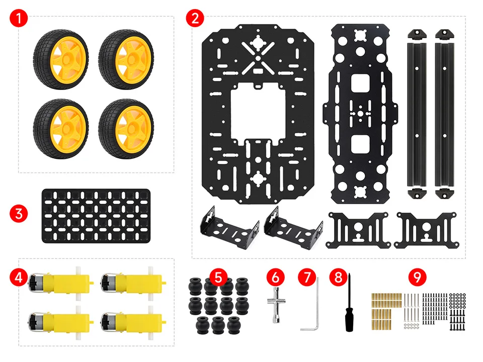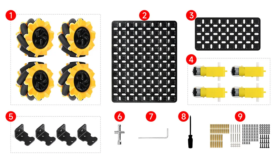 Ruedas Mecanum (rueda L 2PCS, rueda R 2PCS) ×1