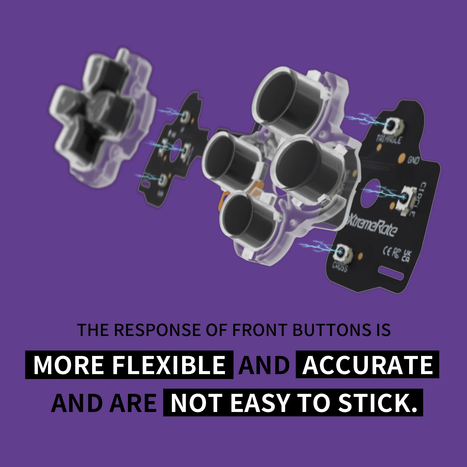 El kit Extremerate Face Clicky para controlador PS5 Edge está diseñado para mejorar su experiencia de juego mejorando la capacidad de respuesta y precisión de los botones frontales del controlador.