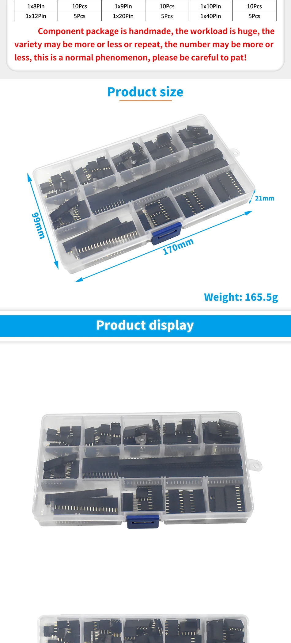 Kit de combinación de placa PCB, conector hembra de una sola fila de 155mm, 2/3/4/5/6/7/8/9/10/12/20/40 Pines, 2,54 unids/lote por caja