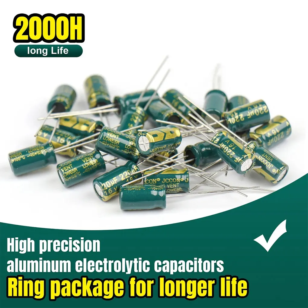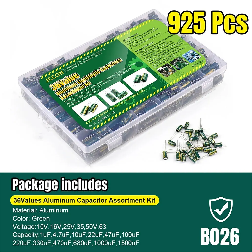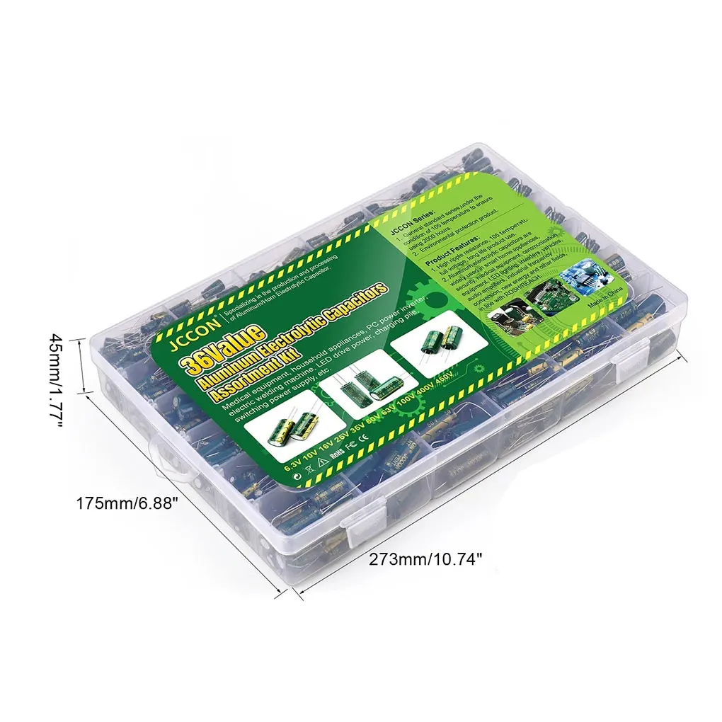 Fiable: condensadores con una gran capacidad para un uso amplio. Larga vida útil y condensadores electrolíticos de aluminio duraderos. Un Kit de 36 valores de condensadores electrolíticos, incluyendo 36 valores de condensadores electrolíticos de aluminio. La ESR es baja para un mejor rendimiento.