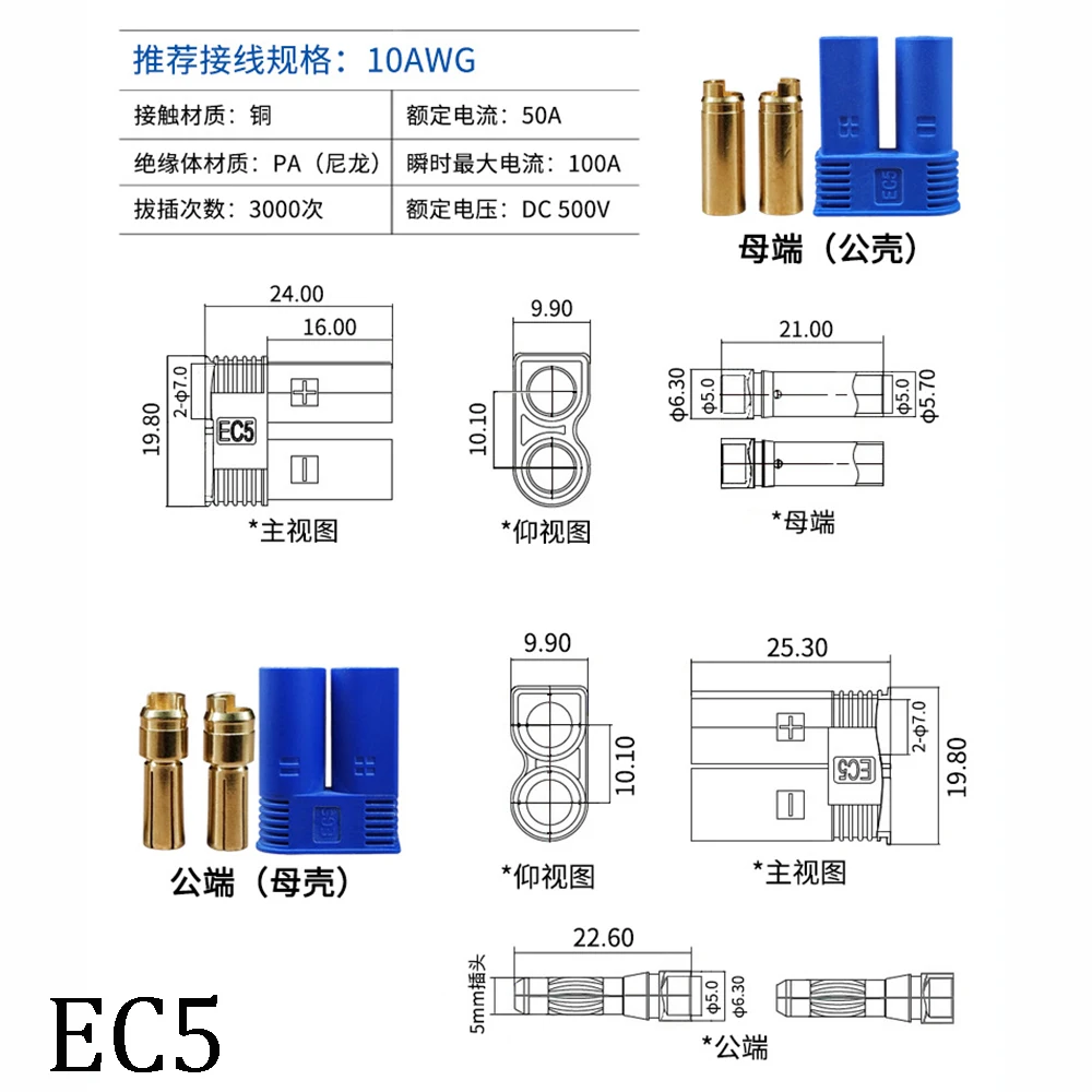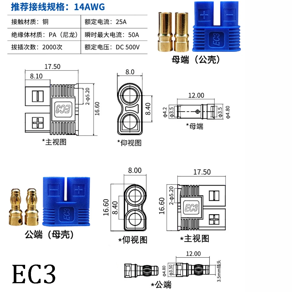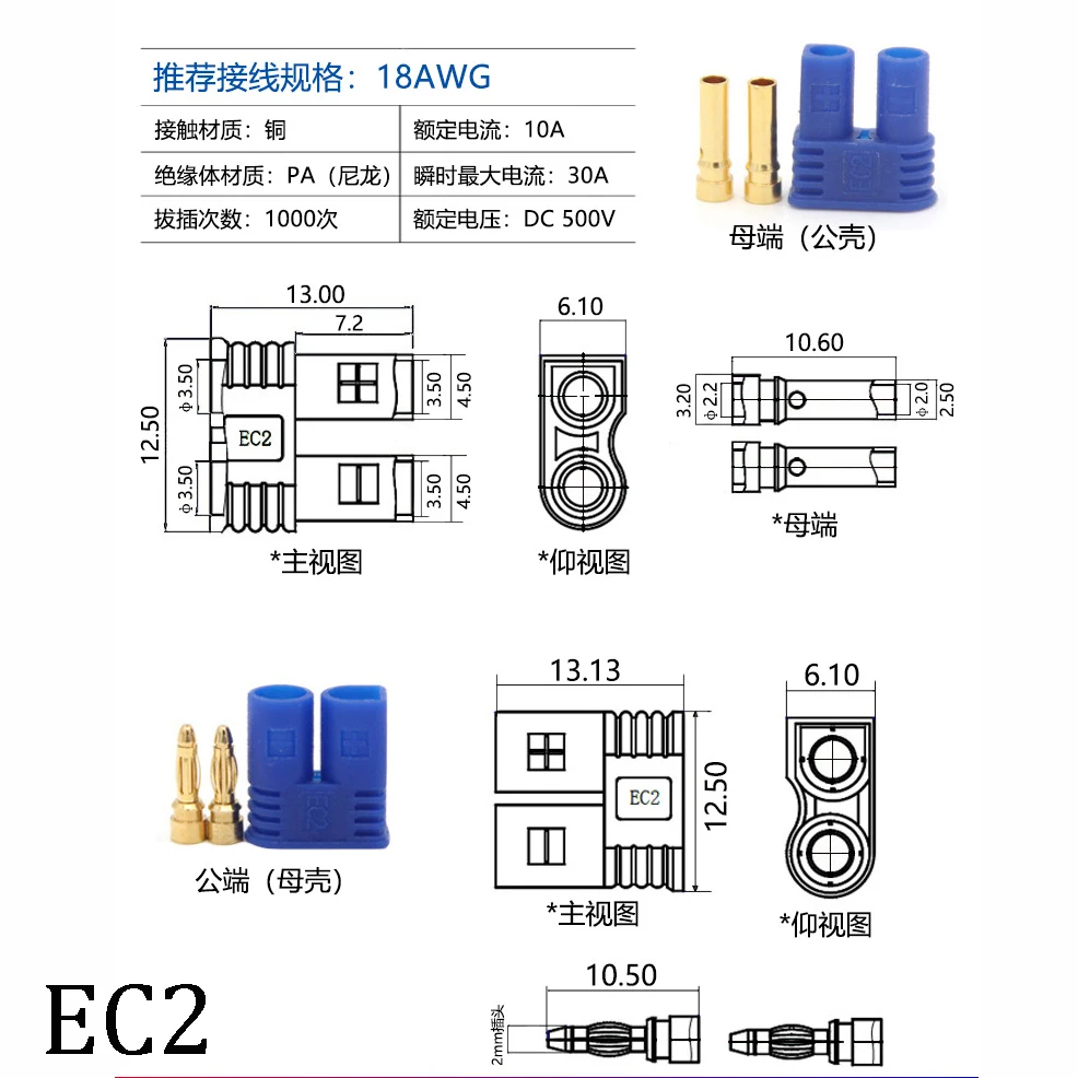 Comprar Kit de conector de batería de enchufe Banana EC2 EC3 EC5 EC8, conector macho/hembra chapado en oro, conector de modelo de avión de componente RC