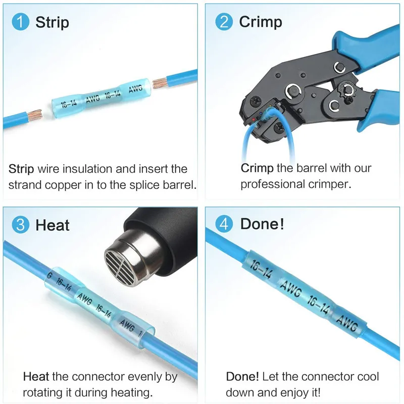 Comprar Kit de conectores termorretráctiles para automóviles, terminales de crimpado de cable, empalme de tope, 100/200 Uds.