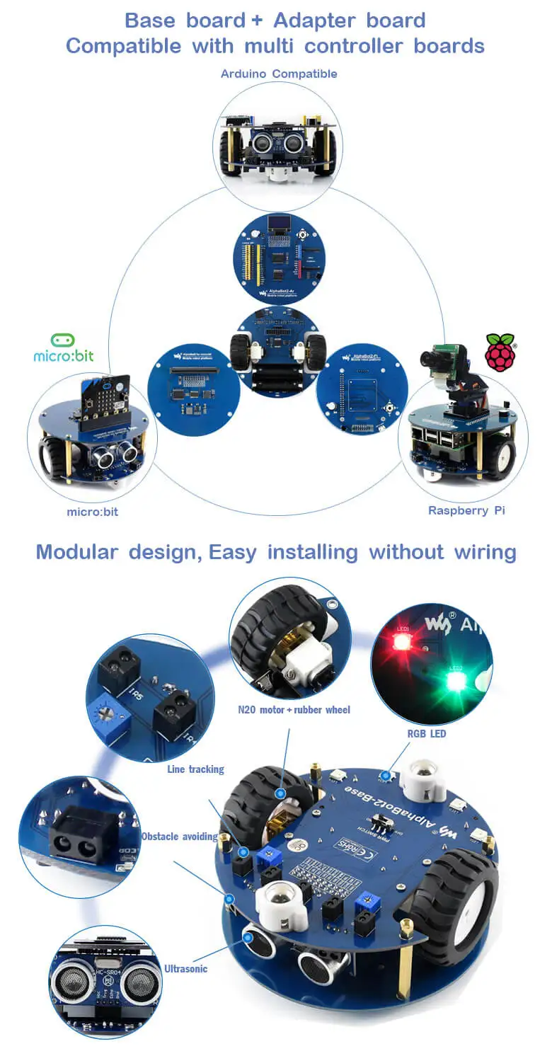 Comprar Kit de construcción de robot Waveshare AlphaBot2 basado en la versión original BBC micro:bit, o micro:bit V2, o solo accesorios